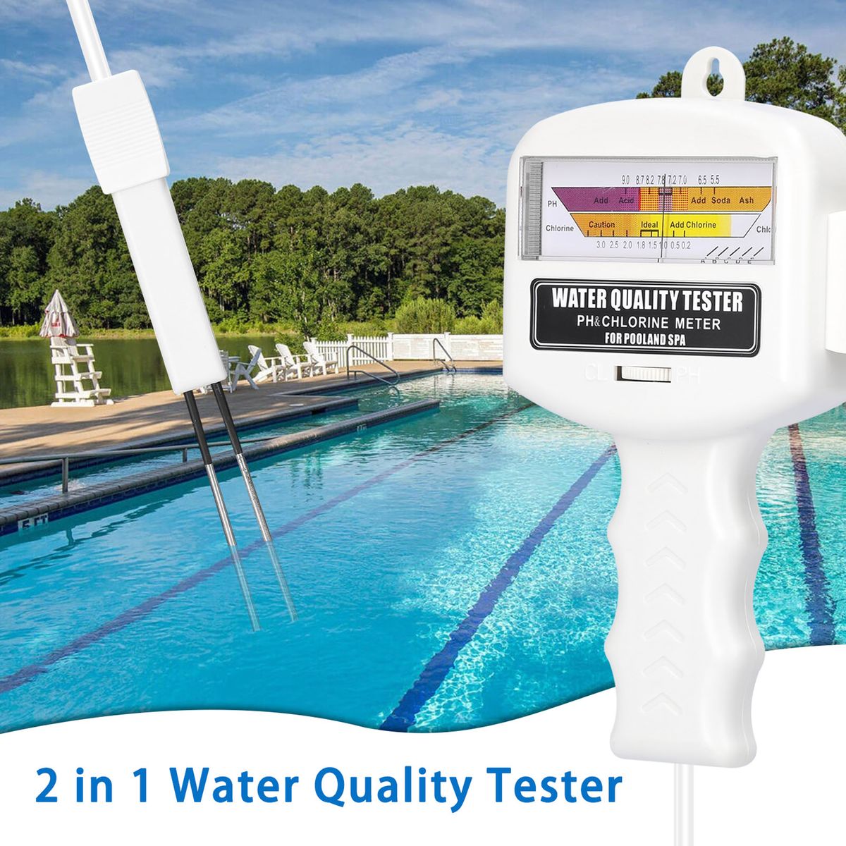 2-in-1 water quality tester is used to detect the PH value and chlorine level of water, helping you to understand the water quality in real time. Small size, light weight, easy to carry and operate.
