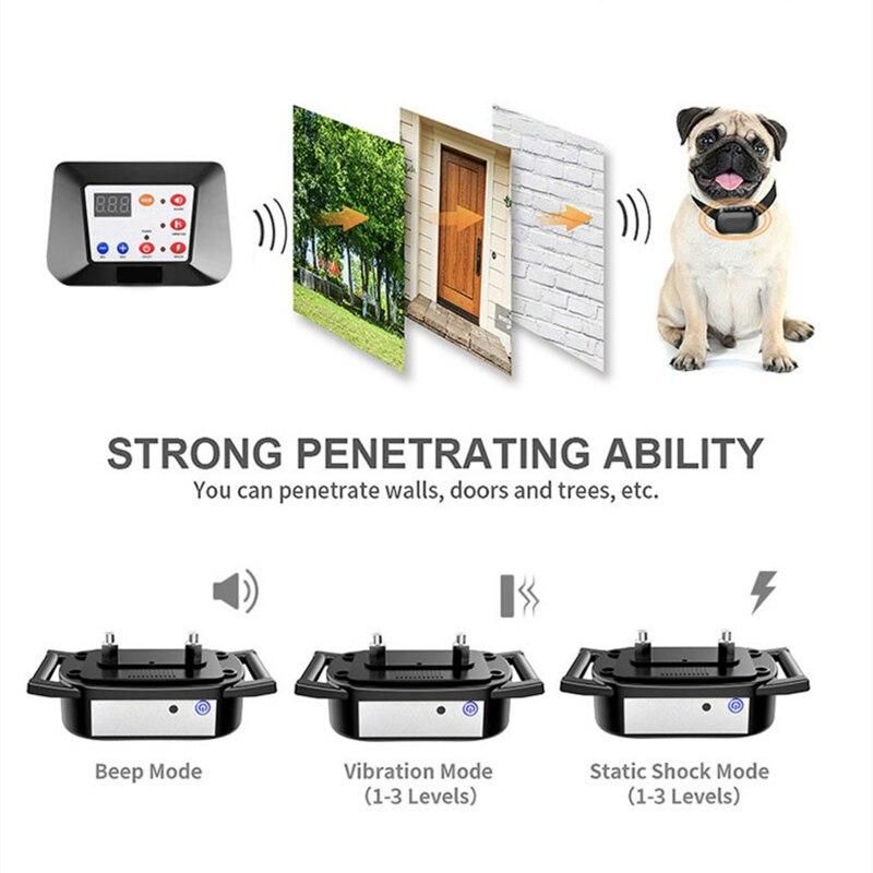 3. When the dog exceeds the set activity range, the receiver will automatically start the electronic fence function, and give a sound prompt for about 3 seconds, and then give an electrostatic prompt to remind the dog to return to the safe area. If the dog continues to move forward, the sound and electric shock work at the same time, and the frequency is gradually strengthened, the dog will not move forward after feeling the sound warning. If the dog doesn't listen, If the vibration warning or running speed is too fast beyond the range of the wireless fence, you can switch the dog training mode of the transmitter for dog training. The dog can return to the range of the wireless fence and switch to the electronic wireless fence mode.