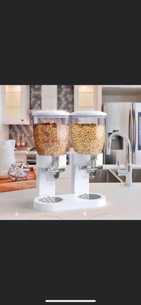 It provides convenient storage and portions of dry food. Dispenses approximately 1 ounce of dry food with every twist of the knobSometimes you crave a lot of options, and then sometimes you want this single control Dry Food Dispenser to tell you what to do. Rotate a flavorful roster of your favorite fixings' and enjoy snack time on-demand while de-cluttering cabinet space. You can also anchor this single food dispenser to a wall and make more efficient use of your counter space. Its portion control containers dispense as little or as many honey oat squares as you want while keeping them fresh with an airtight seal. And when you get tired of being told what to do, mix things up by changing out its contents with nuts, beans or chocolate-covered nuggets of authority.