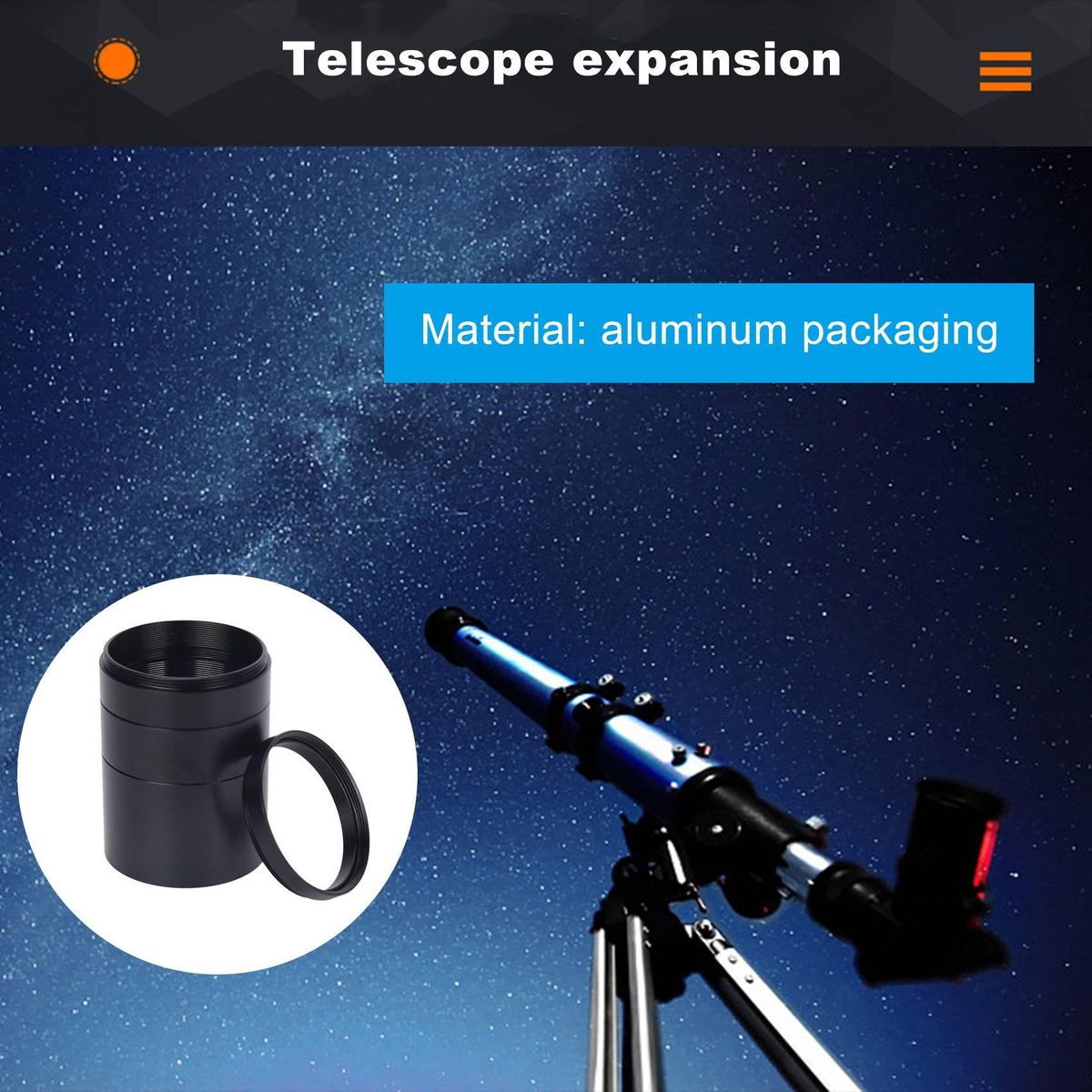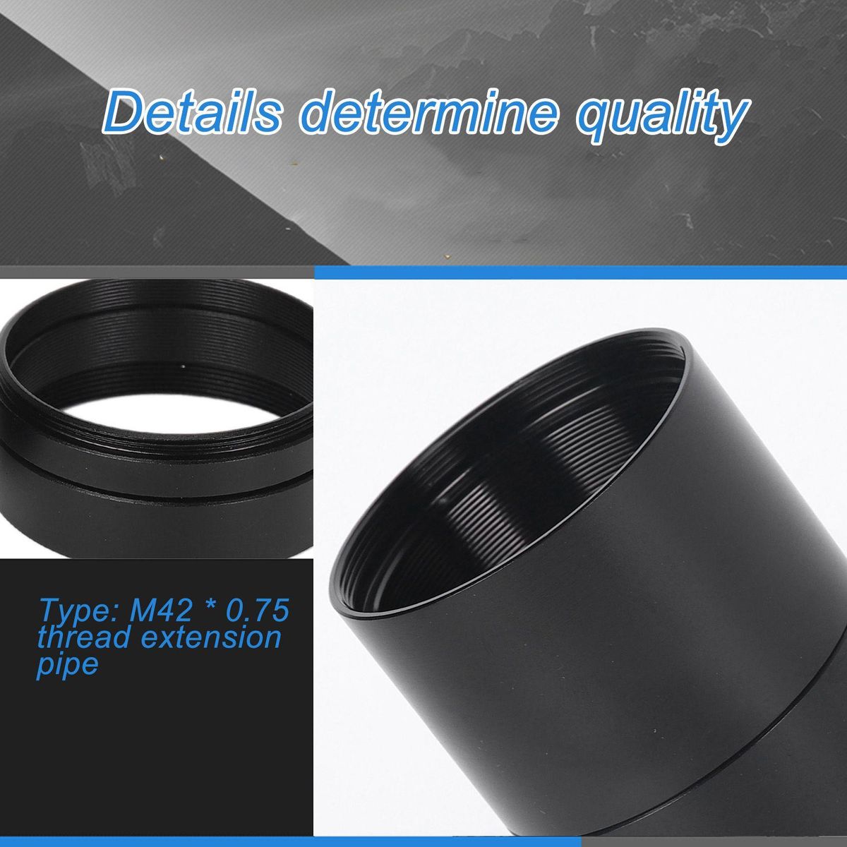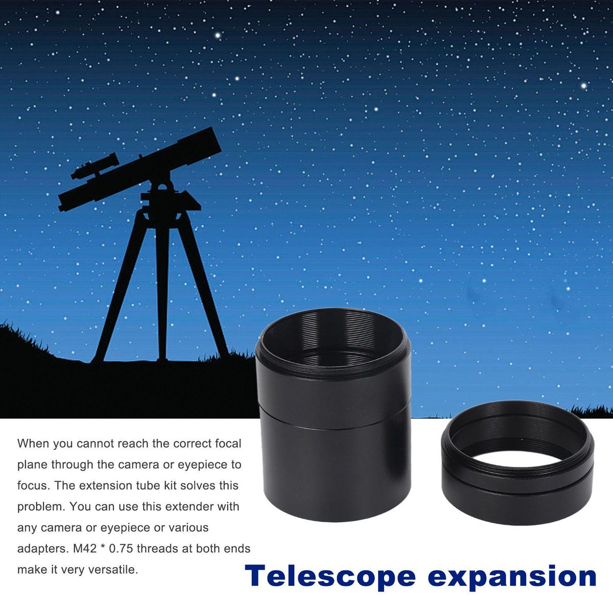 5 The extension tube has a M42 interior thread and a M42 exterior thread for solving spacing problems in astrophotography and eliminates a range of focusing problems