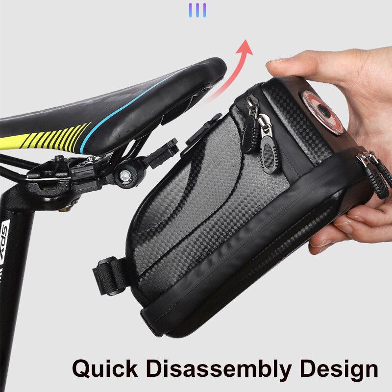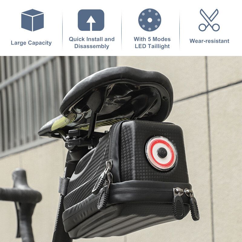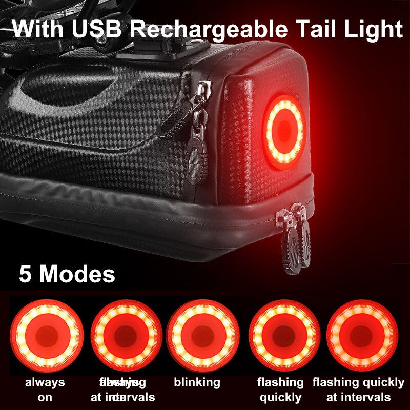 -With USB Light:The rear lights of the car bag are integrated into one body. No additional tail lights are needed. The Bicycle Bag comes with a USB rechargeable tail light, 5 modes: always on, flashing at intervals, blinking, flashing quickly, and flashing quickly at intervals.