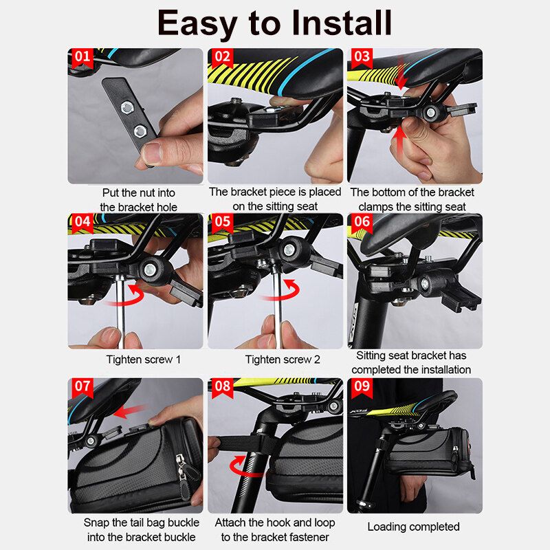 *Double Fixed Mounting Mode:Equipped with a seat base mounting bracket and combined with magic sticker to make the saddle bag a double stability, free of worrying any shaking on bump roads.
