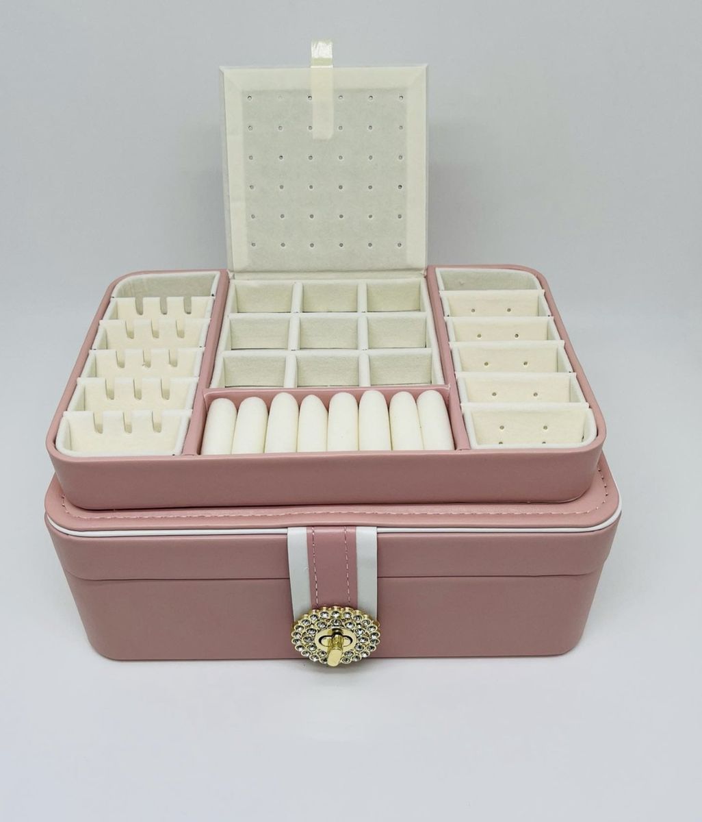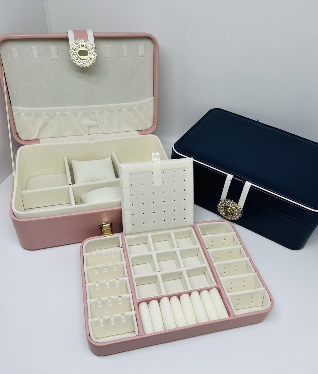 The second layer has 6 bigger and deeper compartments for bigger and chunky jewelry pieces.