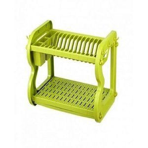 2 Layers of dish rack - Plastic Tray - Cutlery storage - Simple .This colorful 2-tier plastic dish drainer with cutlery rack holder is ideal to put for any size dishes, cups, mugs, glasses and cutlery etc. It allows water to be drained straight into your sink and it's made of high grade and strong durable plastic.