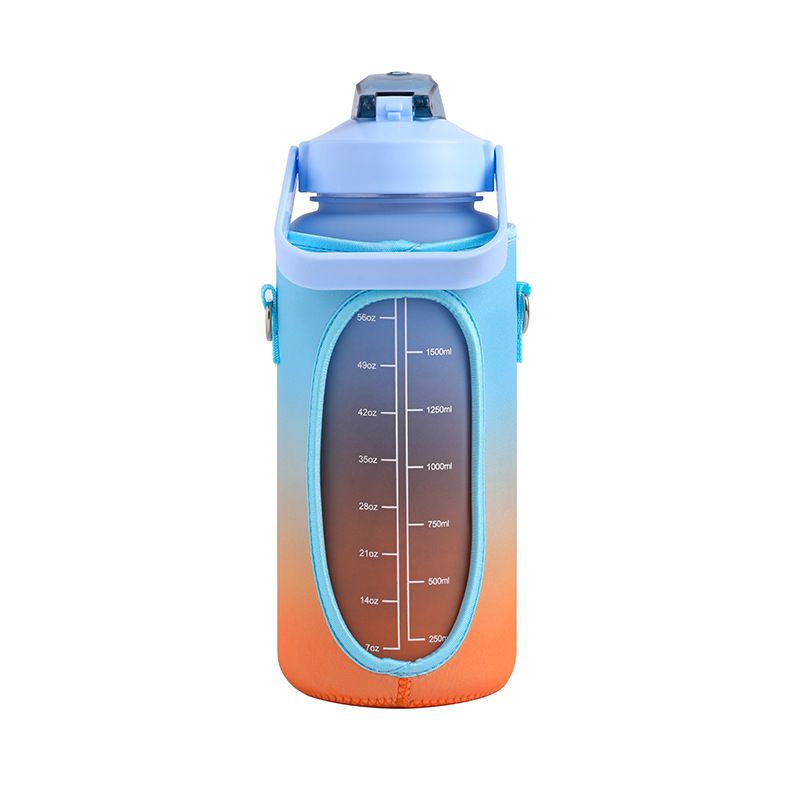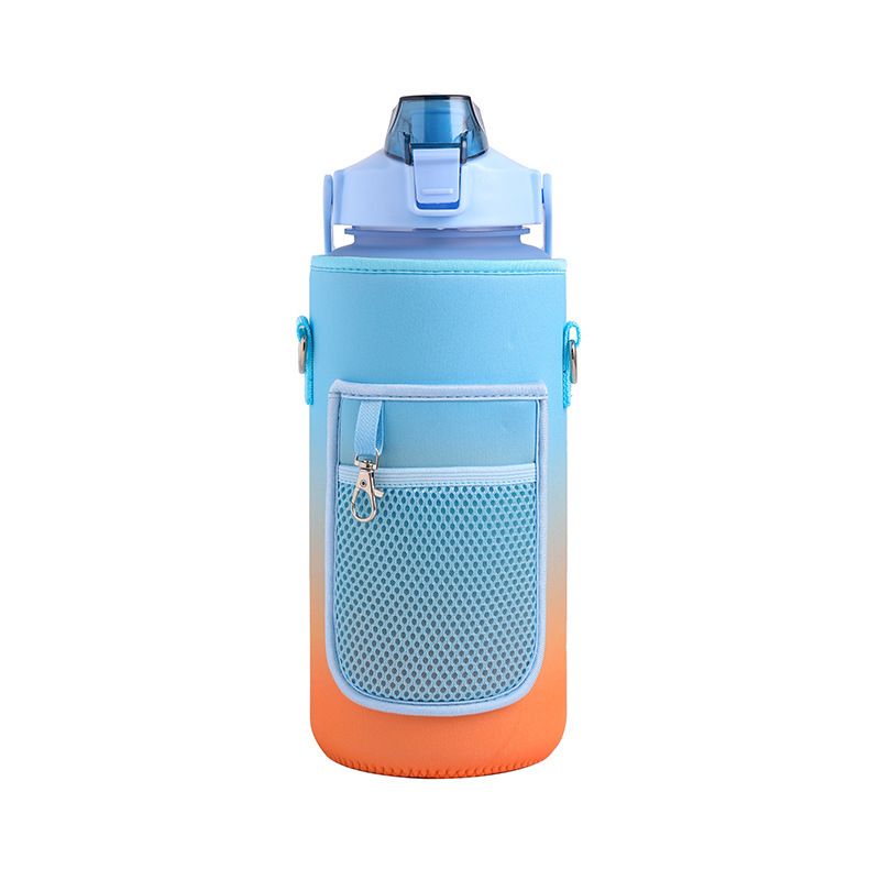 6.INSULATED STORAGE SLEEVE DESIGNS: Multifunction Half Gallon Water Jug With Sleeve, which protects the water bottle from slip and fall. Unique Storage Sleeve Design that holds your cards and cell phone, keychain, and is finished with removable shoulder strap for convenient hands-free carrying!