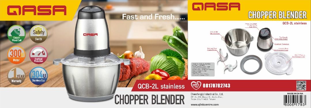 Qasa Chopper Blender - is design for pounding and chopping of food items. It was