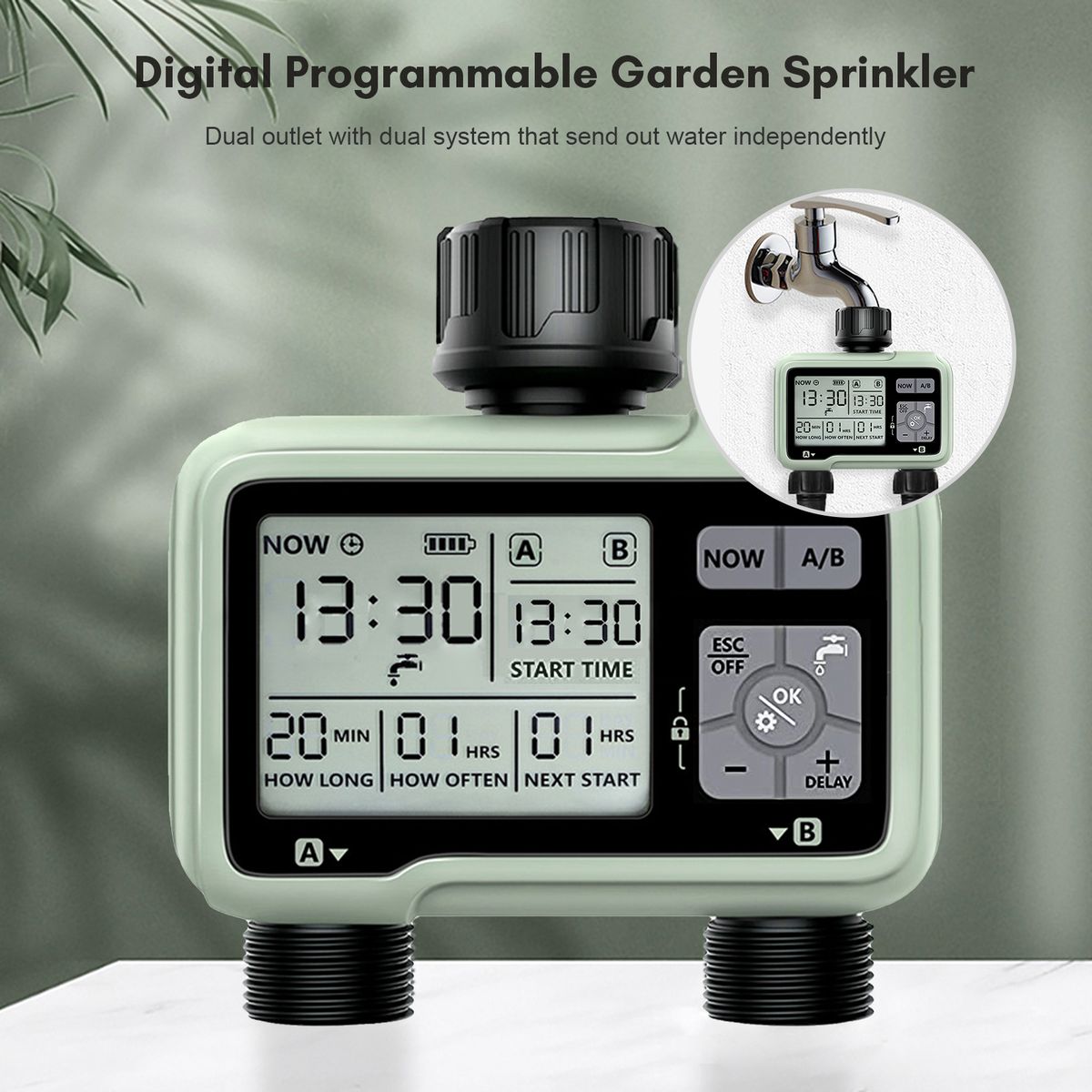 【Multi-functional】This irrigation system comes with various functions, including child lock mode and manual rain delay feature that prevents accidental triggering by children or pets and saves water on rainy days.