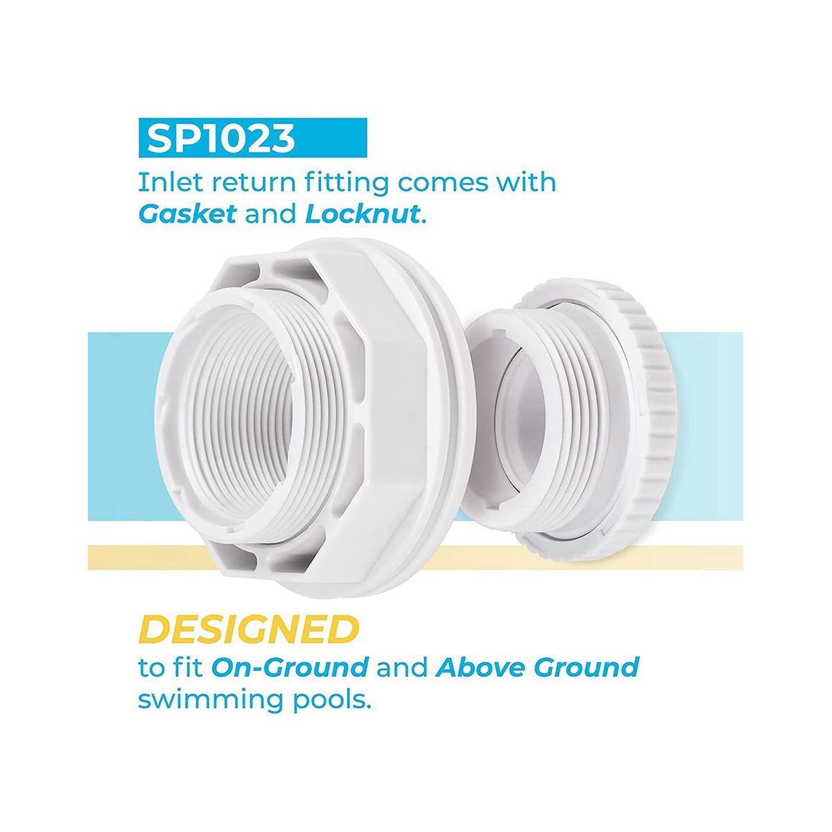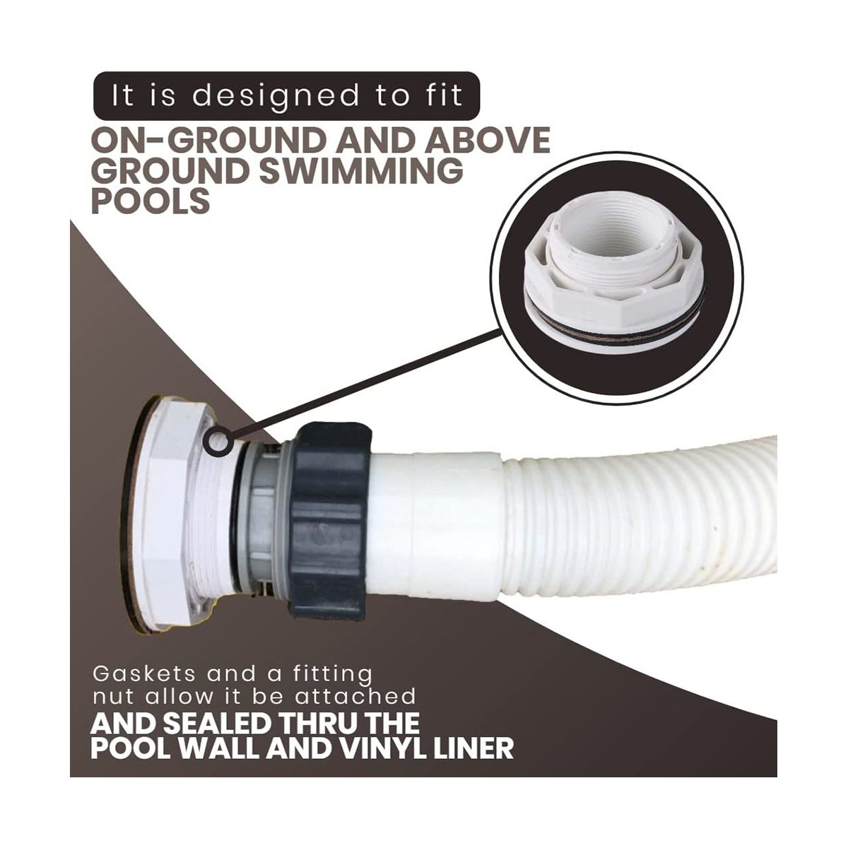 Both the locknut and the gasket allow the inlet fitting to attach through the fiberglass pools or vinyl pool liners without leaking Colour:White