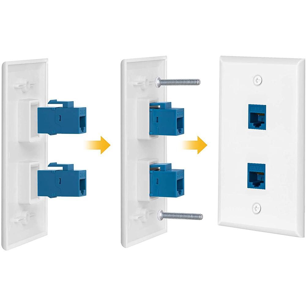 Wide applications: the female to female cat6 inline couplers and 1 port standard size wall plate provide a comprehensive solution for networking, audio, video and more DIY project of your home and office