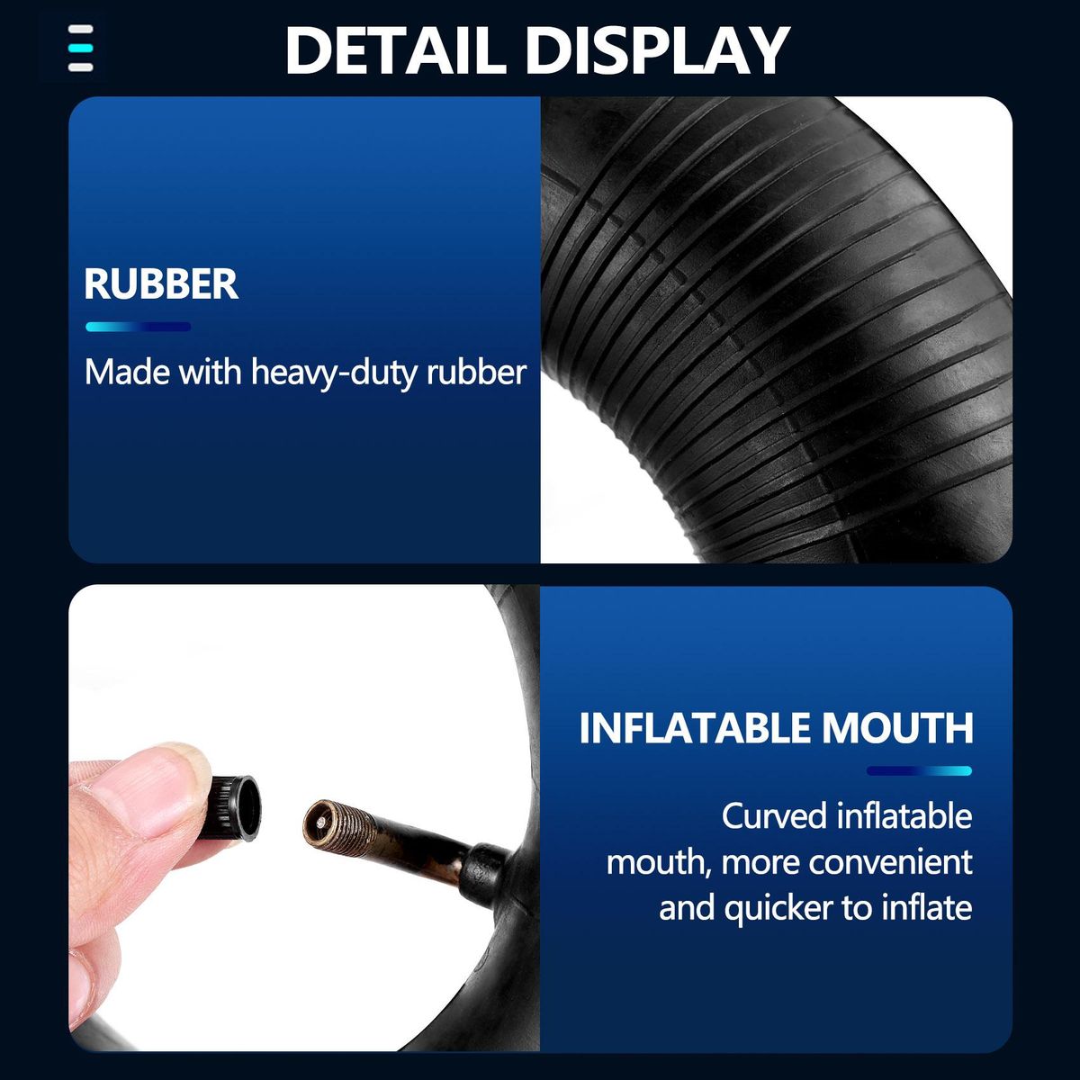 Inner tube comes with bent air valve, it is recommended to make the valve towards the outside when installation, which can be convenient to inflate.