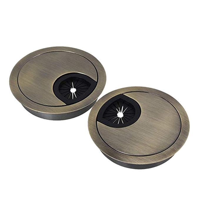 2Pcs 60mm Computer Desk Table Grommet Cable Port Wire Hole Cover Bronze