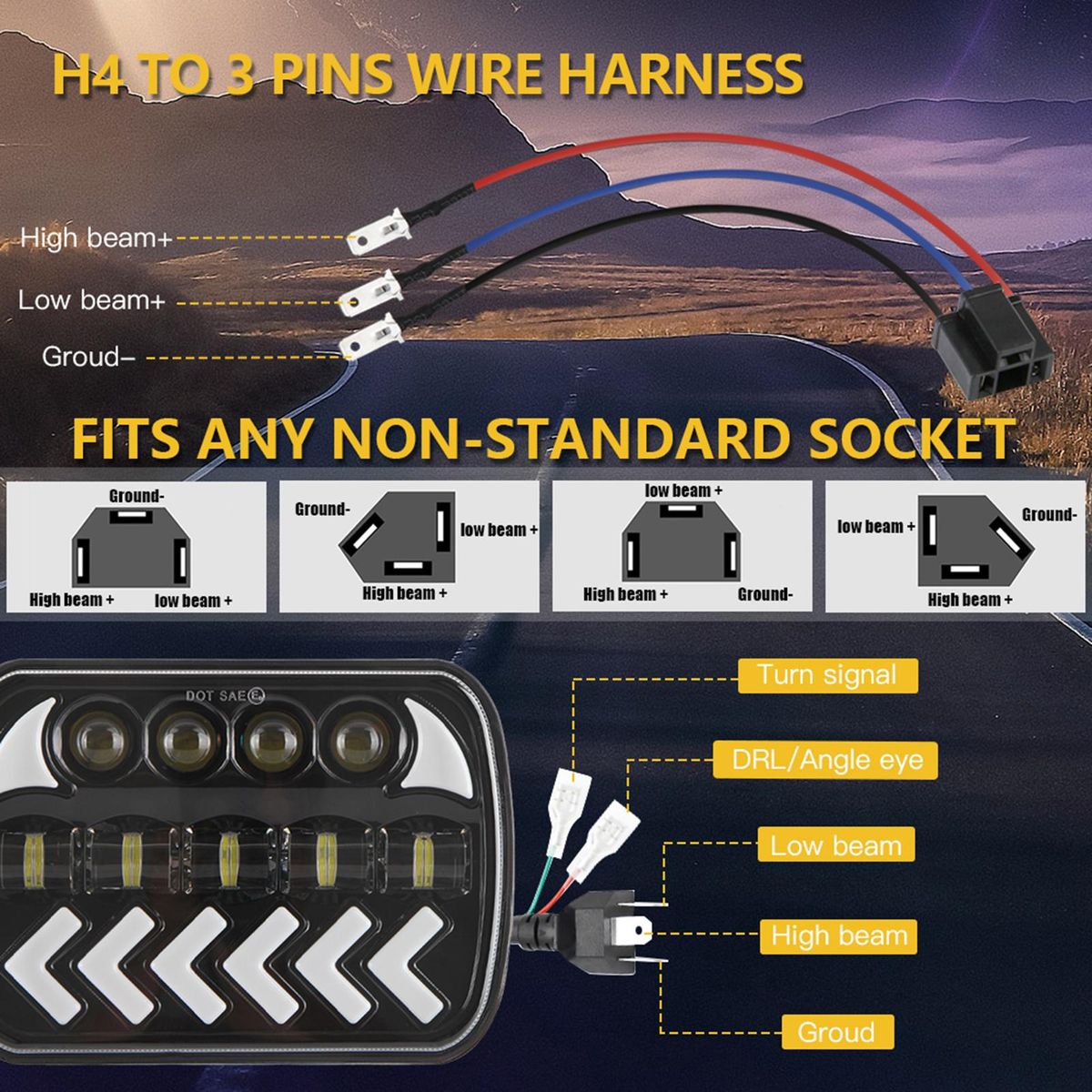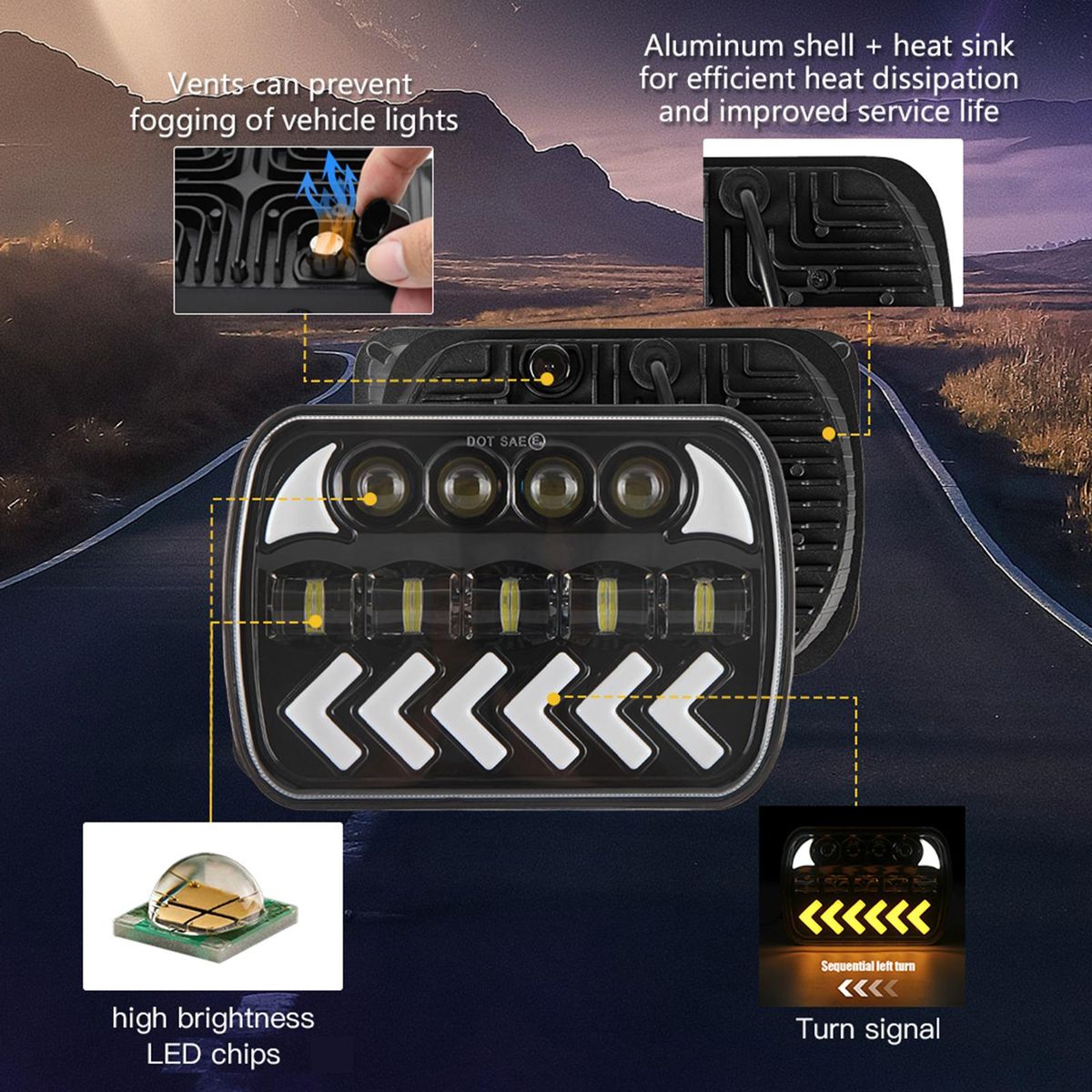 Buy 2 Pack Car LED Headlights 7inch Headlamp with White High/Low Beam DRL Amber Arrow Dynamic Sequential Turn Signal Replacement for Jeep Wrangler in Nigeria