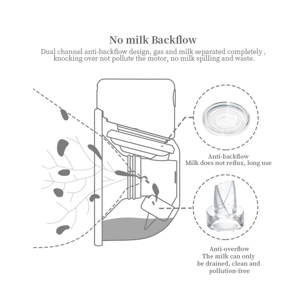 Low noise & leak-proof. The noise of the breast pump is less than 40 decibels, so you 't have to worry about waking up your sleeping baby or attracting others' attention during use. Breast pumps are backflow and leak-proof, so if your breast pump leaks, check that it's installed correctly.