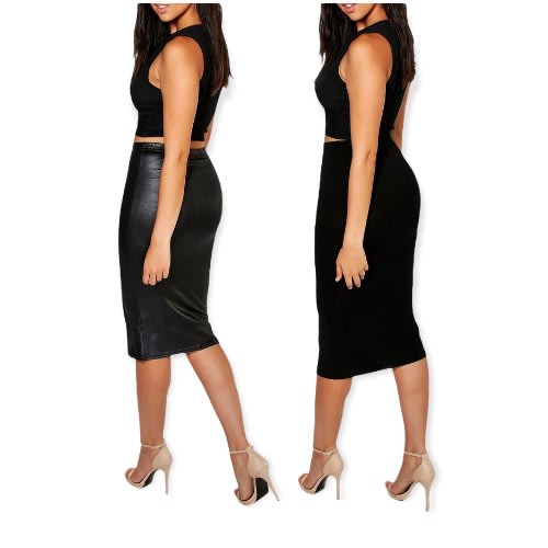Buy 2-pack Faux Leather And Jersey Midi Skirt- Black in Nigeria