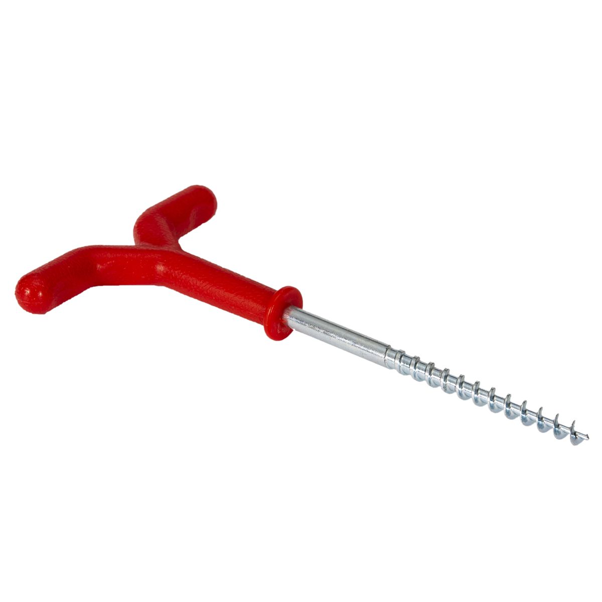 Sturdy spiral metal spike easily goes into the ice or ground.