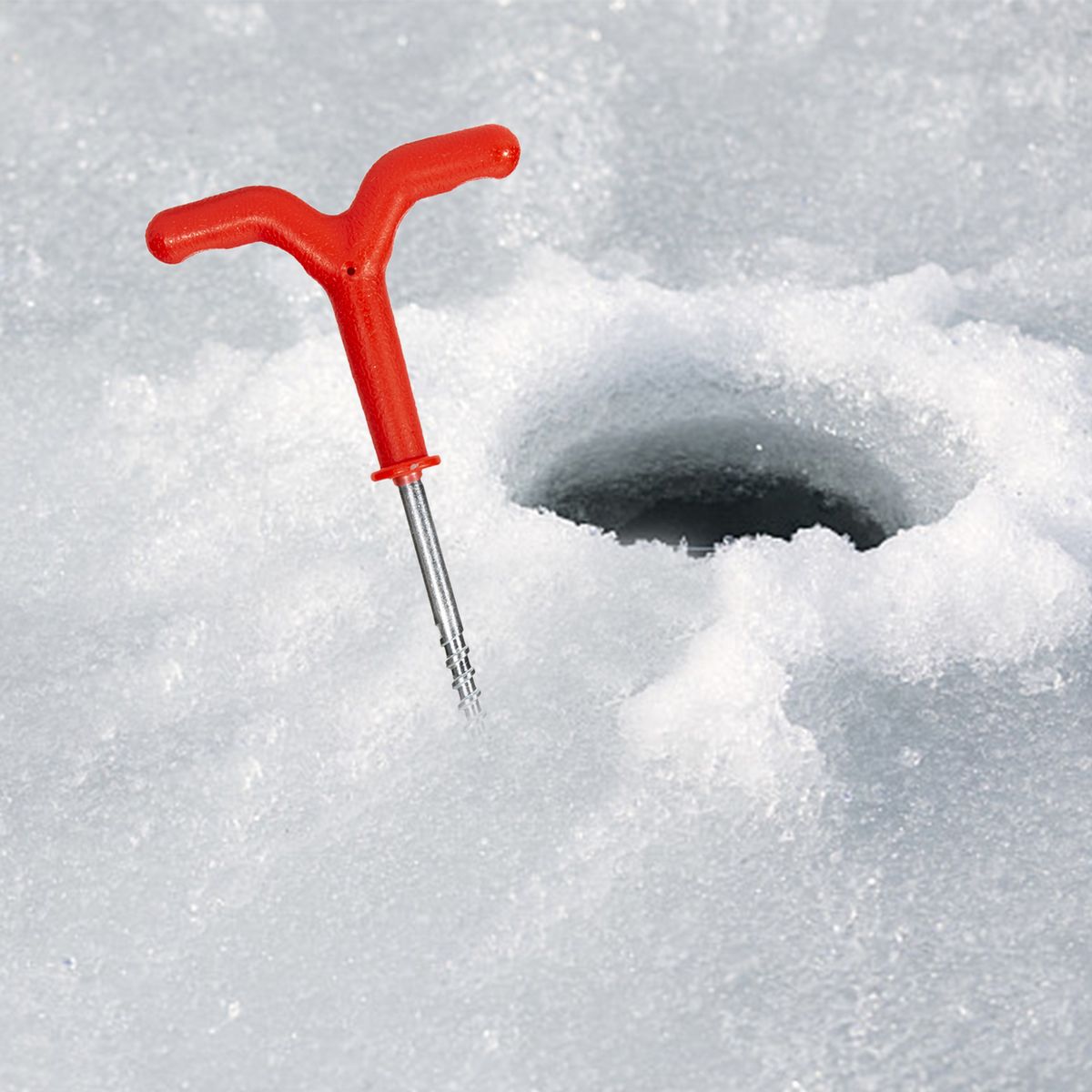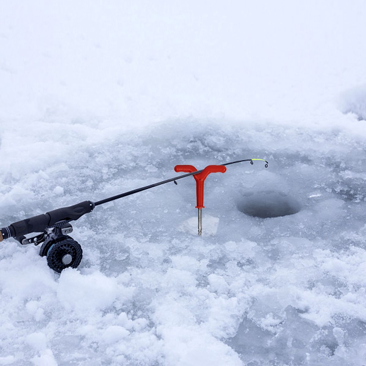 Holds your ice fishing rod conveniently.