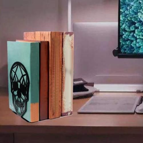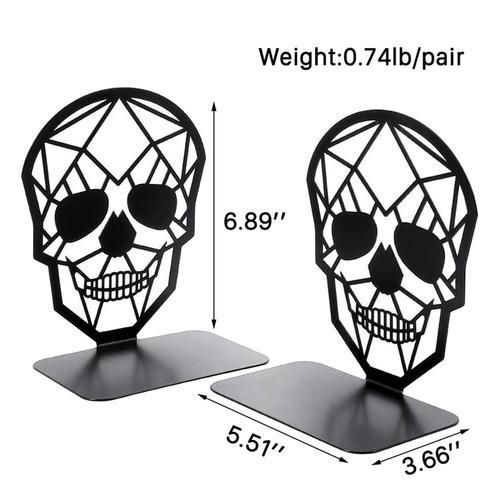 UNIQUE SKULL DESIGN - Displaying an abstract beauty will definitely highlight your books. This cool bookends are specially designed in shape of black skull. The black skull design bookends are perfect for decorating a skull themed decor for your bookshelves in your home, great for Halloween decoration