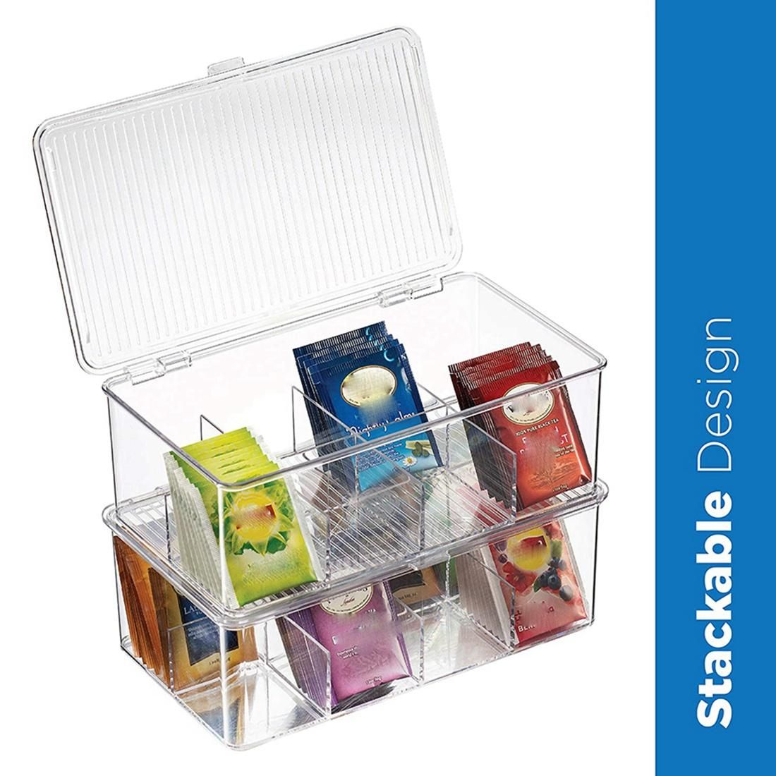 Detailed Information About The Product:Keep your kitchen medicine cabinet or pantry neatly organized with these stackable plastic tea bags pantry storage bins