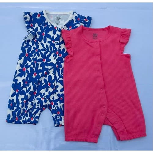 Buy 2 Packs Blue Flowery Print & Plain Baby Girl Playsuit in Nigeria