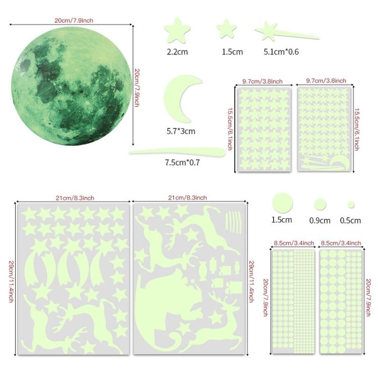 7. Size: moon 20 cm, star sticker 15.5x9.7 cm, dot 8.5x20 cm, Christmas sticker 21x29 cm