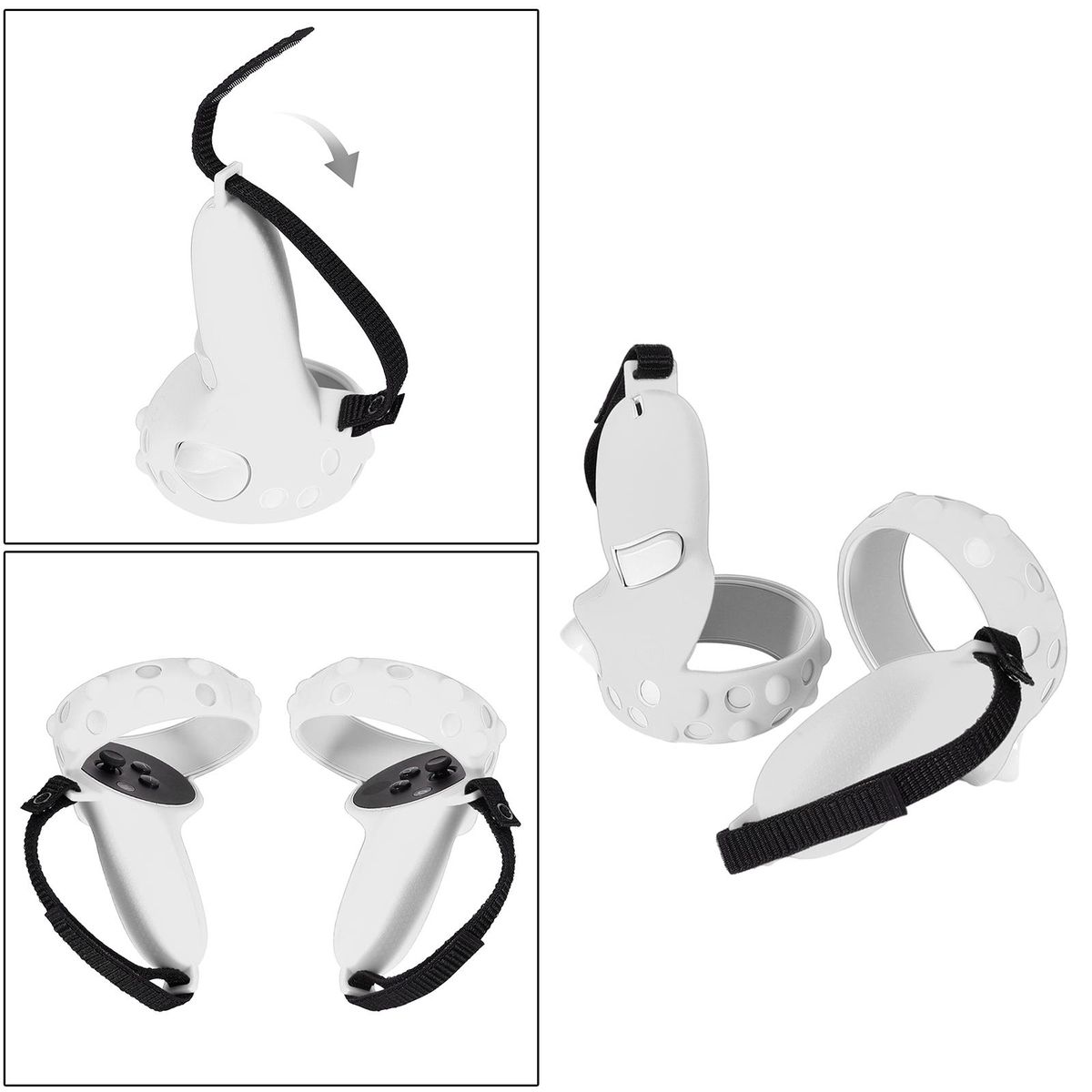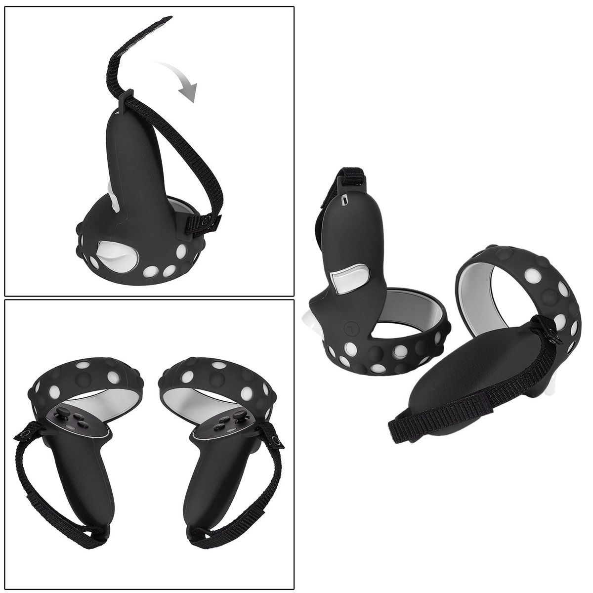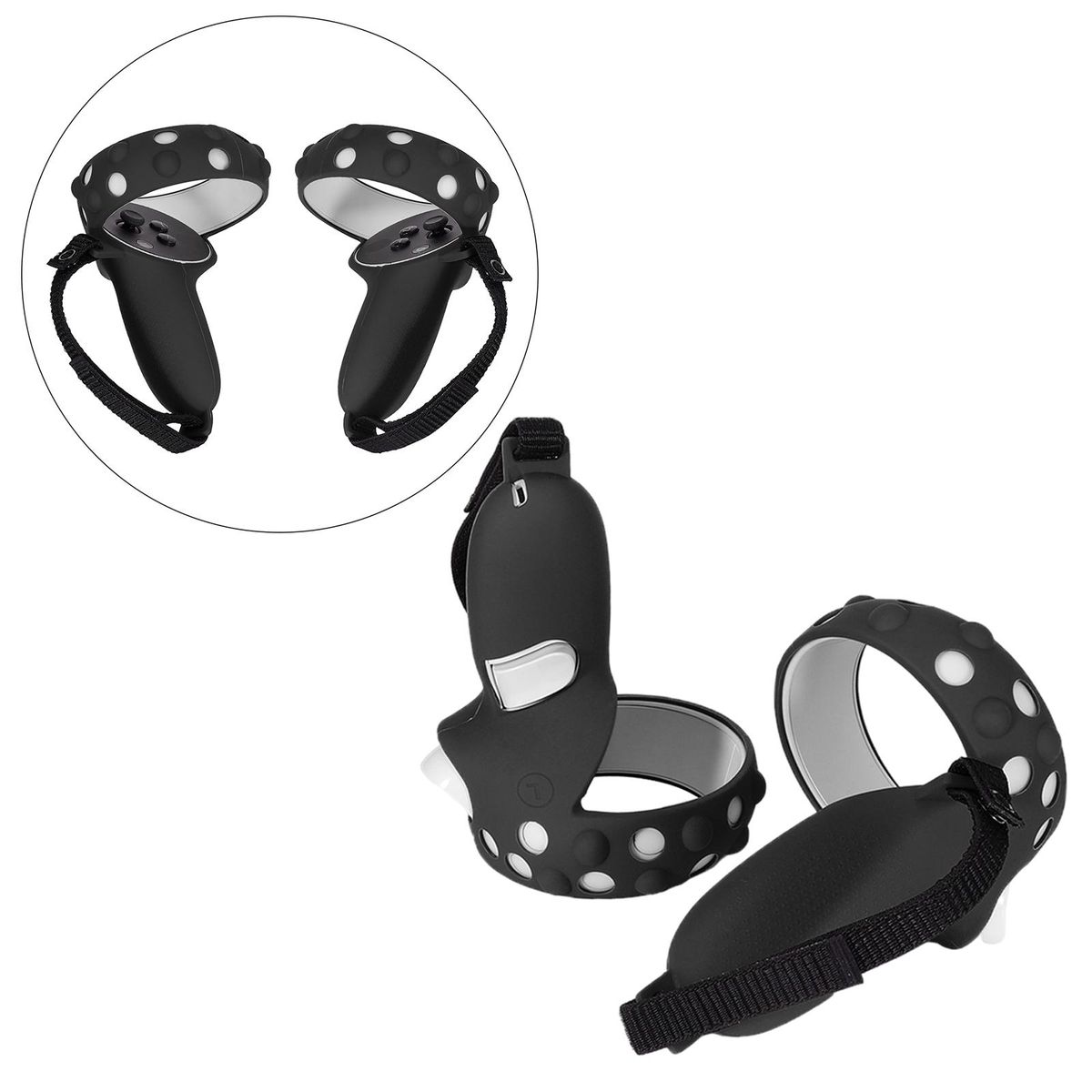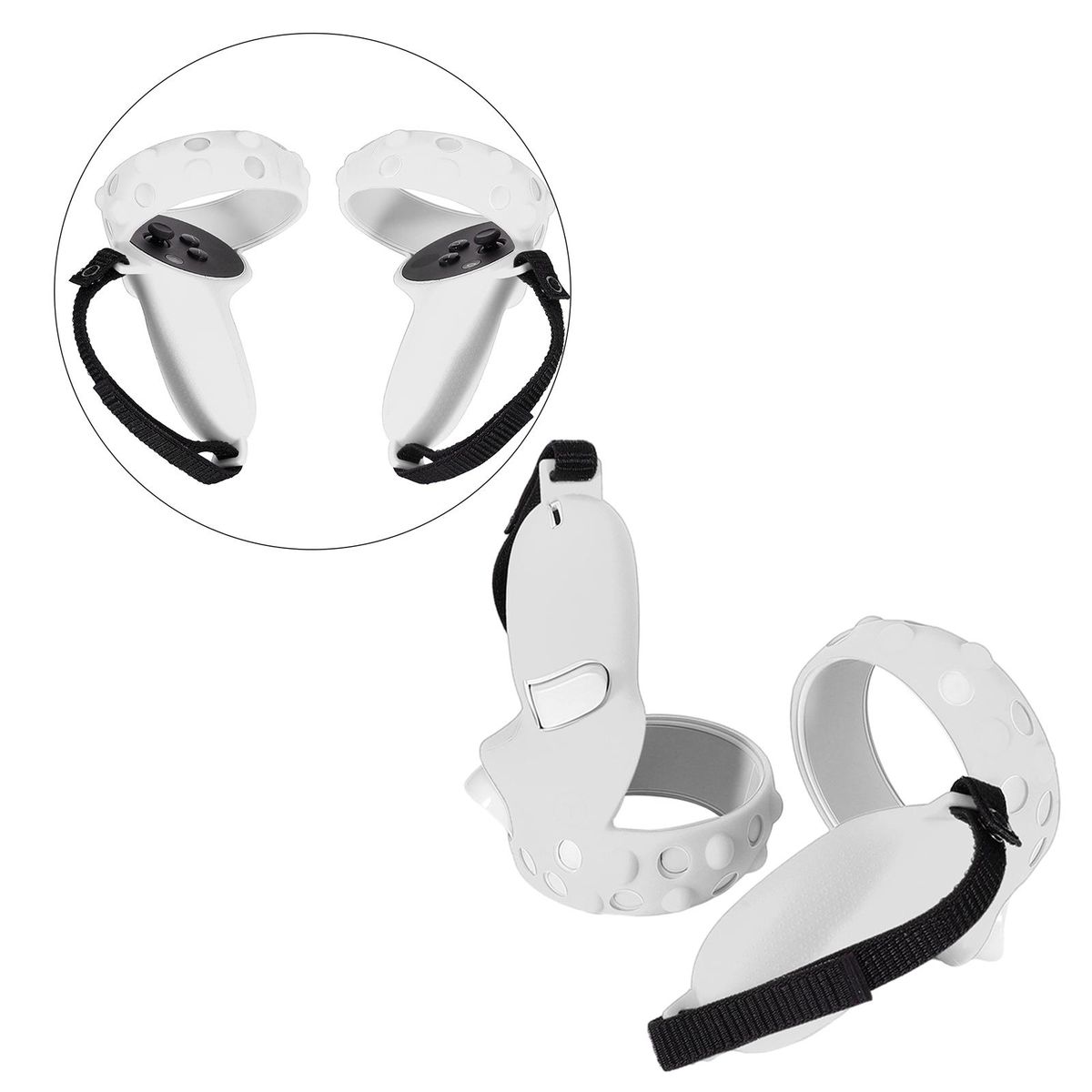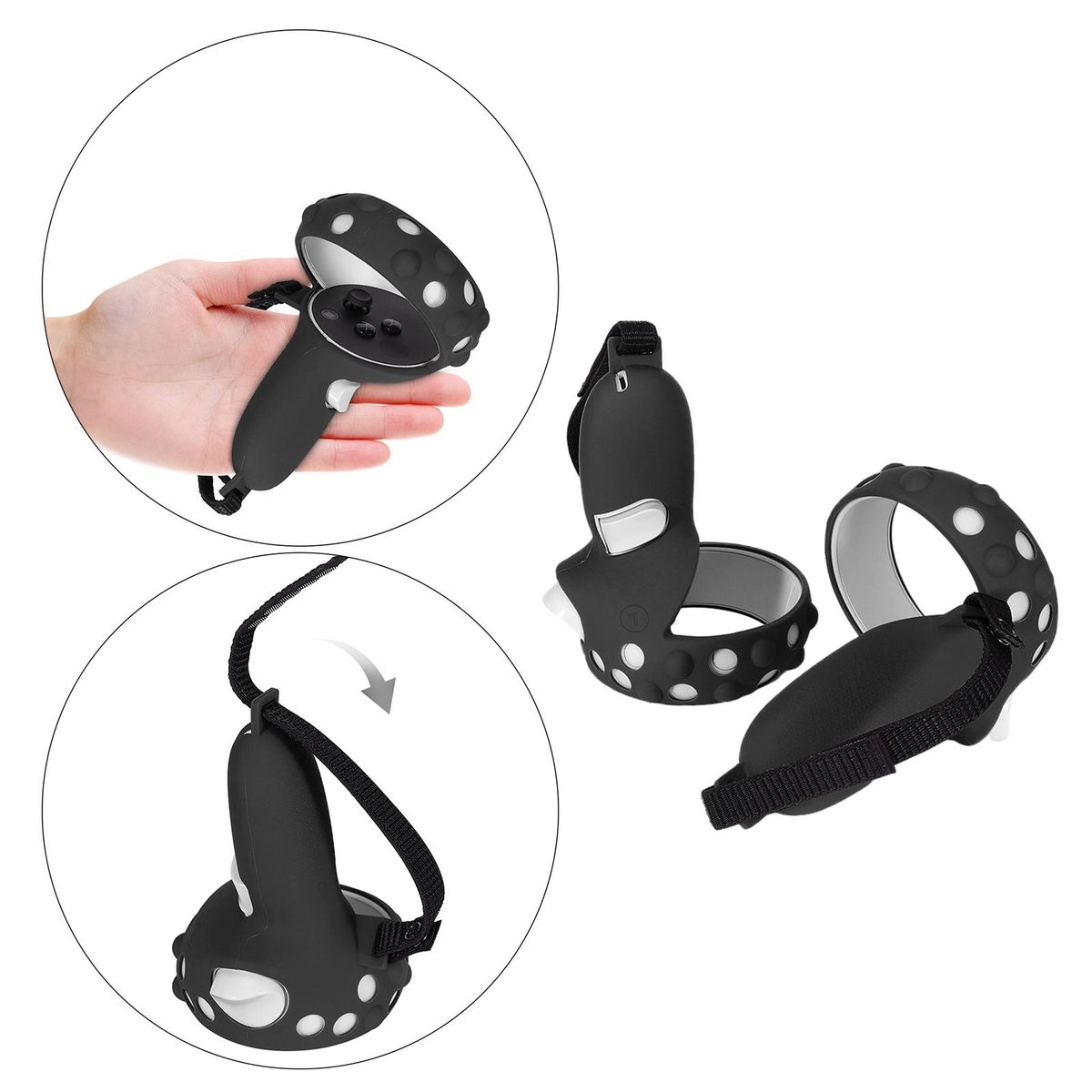 Made of high-strength silicone material, breathable and anti-sweat, keeping your hands dry at all times. Anti-slip design provides full protection for the controller from impacting, scratching and soiling, preventing damage caused by falling in accident.1:1 real machine mold opening, all-in-one design, with precise hole position, close fit.The controller and the handle sleeve are firmly fixed by an adjustable strap, the tightness can be adjusted according to the size of your palm.Lightweight, easy to carry on the go. Designed for Quest 2.
