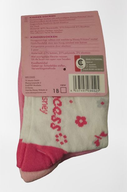 This fun Disney princess design pack of 2 pairs of socks is perfect for fans of Disney. It is ankle high and has a metallic effect. It is machine washable tumble dry.and come with Princess picture on each of the sock