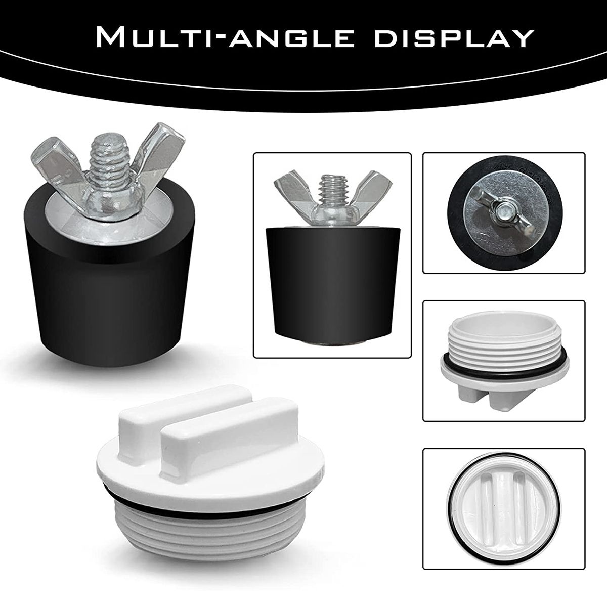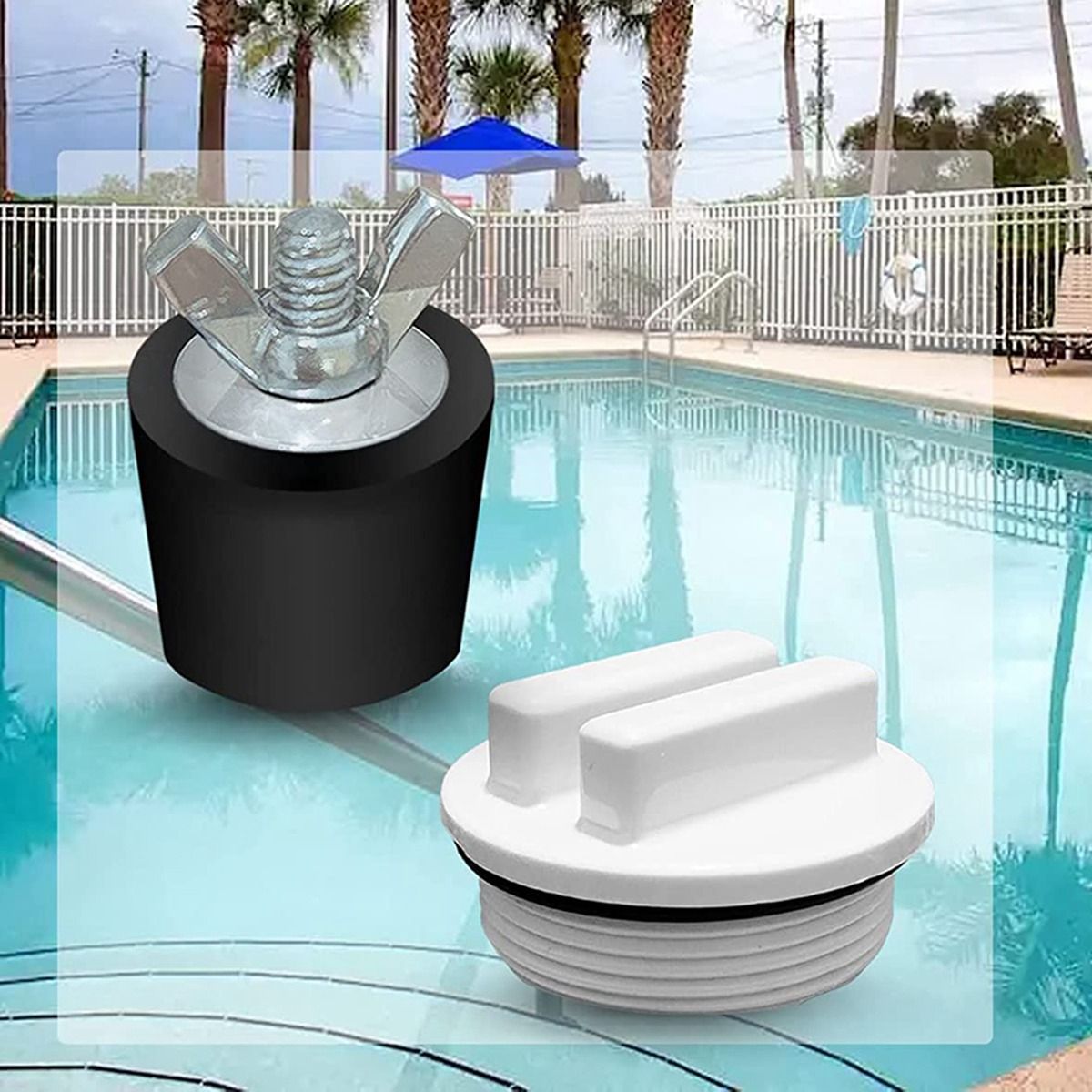 Detailed Information About The Product:The product includes 2 pcs rubber plugs and 2 pcs white threaded pool return pipe plugs.