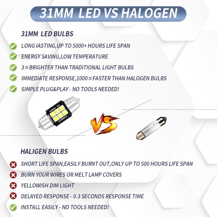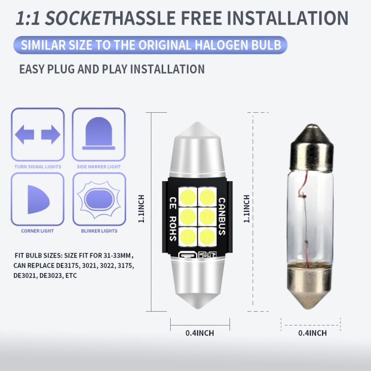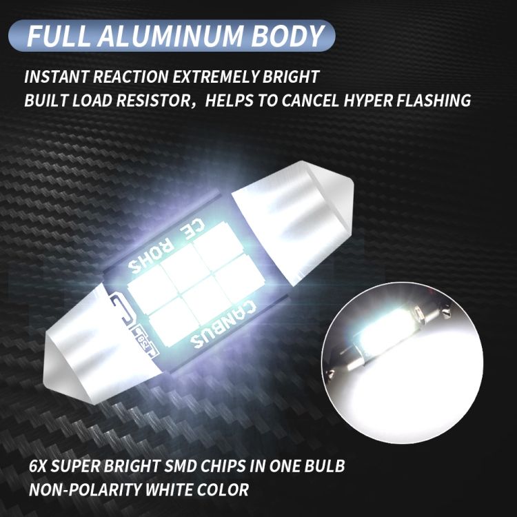 2 PCS 31mm DC12V-24V 3W 6000K 660LM Car Reading Lamp