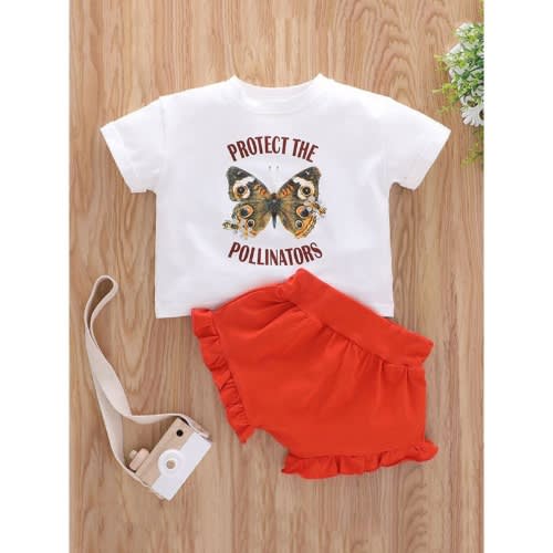 Buy 2 Pcs Baby Girl Outfits Protect The Pollinators Print Top With Shorts in Nigeria