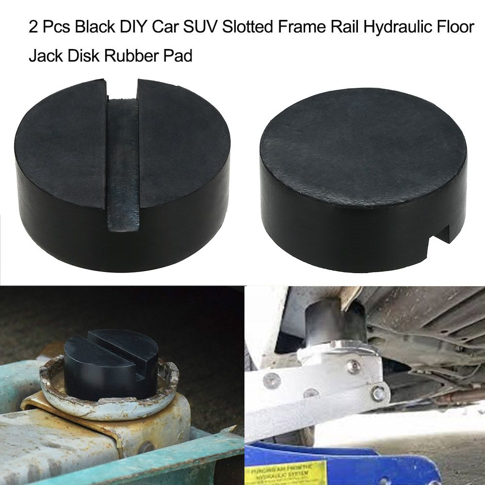 2 Pcs Black DIY Car SUV Slotted Frame Rail Hydraulic Floor Jack Disk Rubber Pad