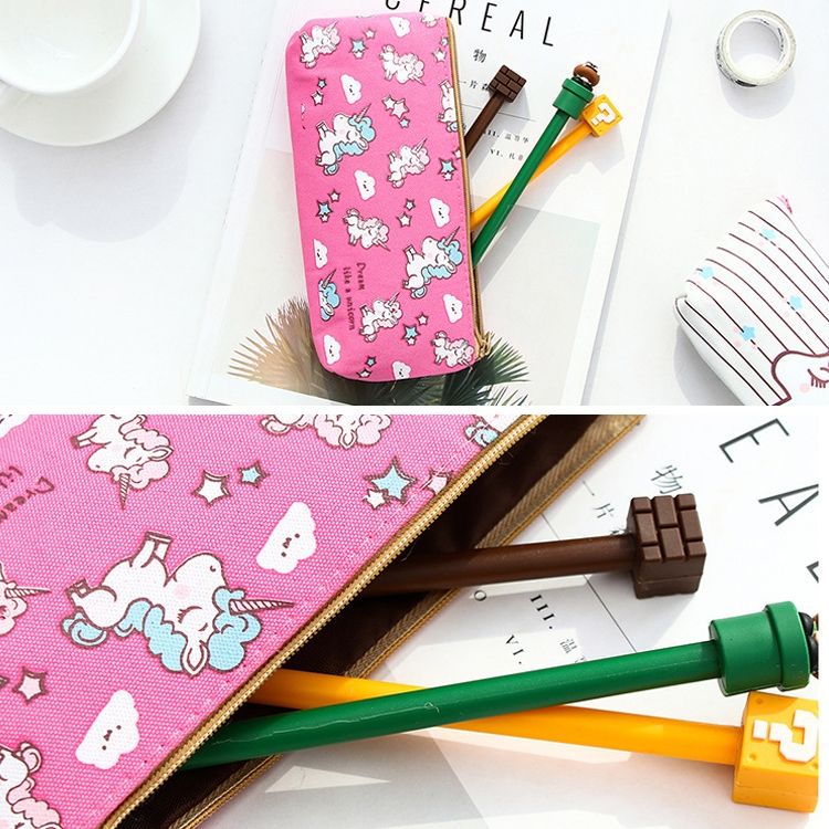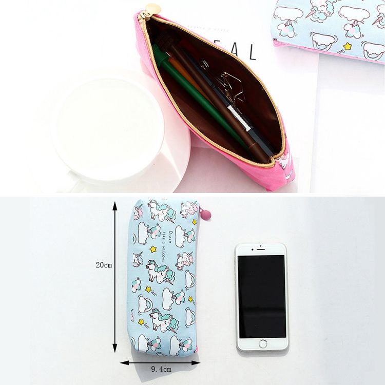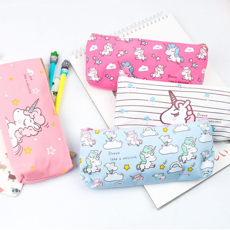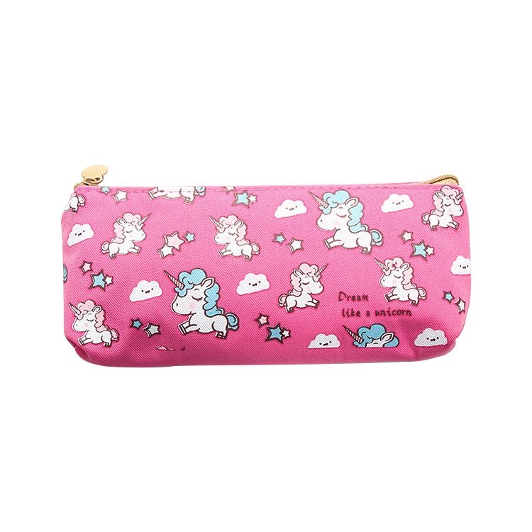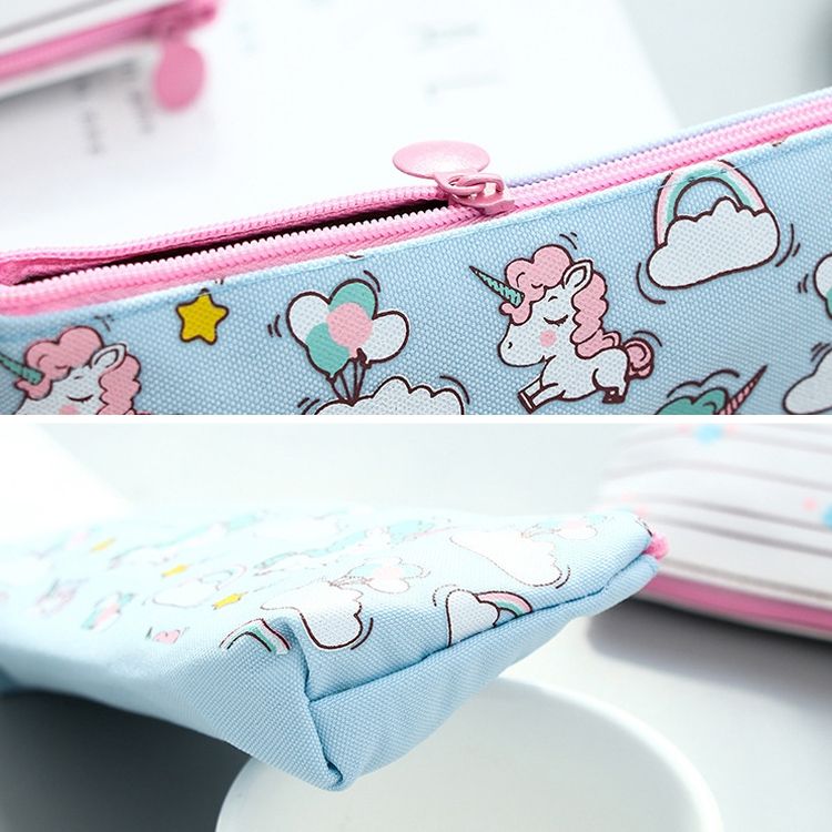 2 PCS Cute Cartoon Animal Unicorn Pattern Pencil Cases Kawaii Canvas School Supplies Stationery Pencil Case Box(Rose Red)