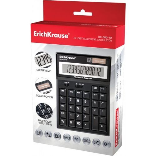CALCULATOR ERICH KRAUSE DC- 5516M 12 DIGITI 45512. DC-5516M 112 DIGITI 45512 .Flat, Soft keys, Black / grey combinations 12 digits12-DIGIT Electronic calculator. Two way power, solar and battery.