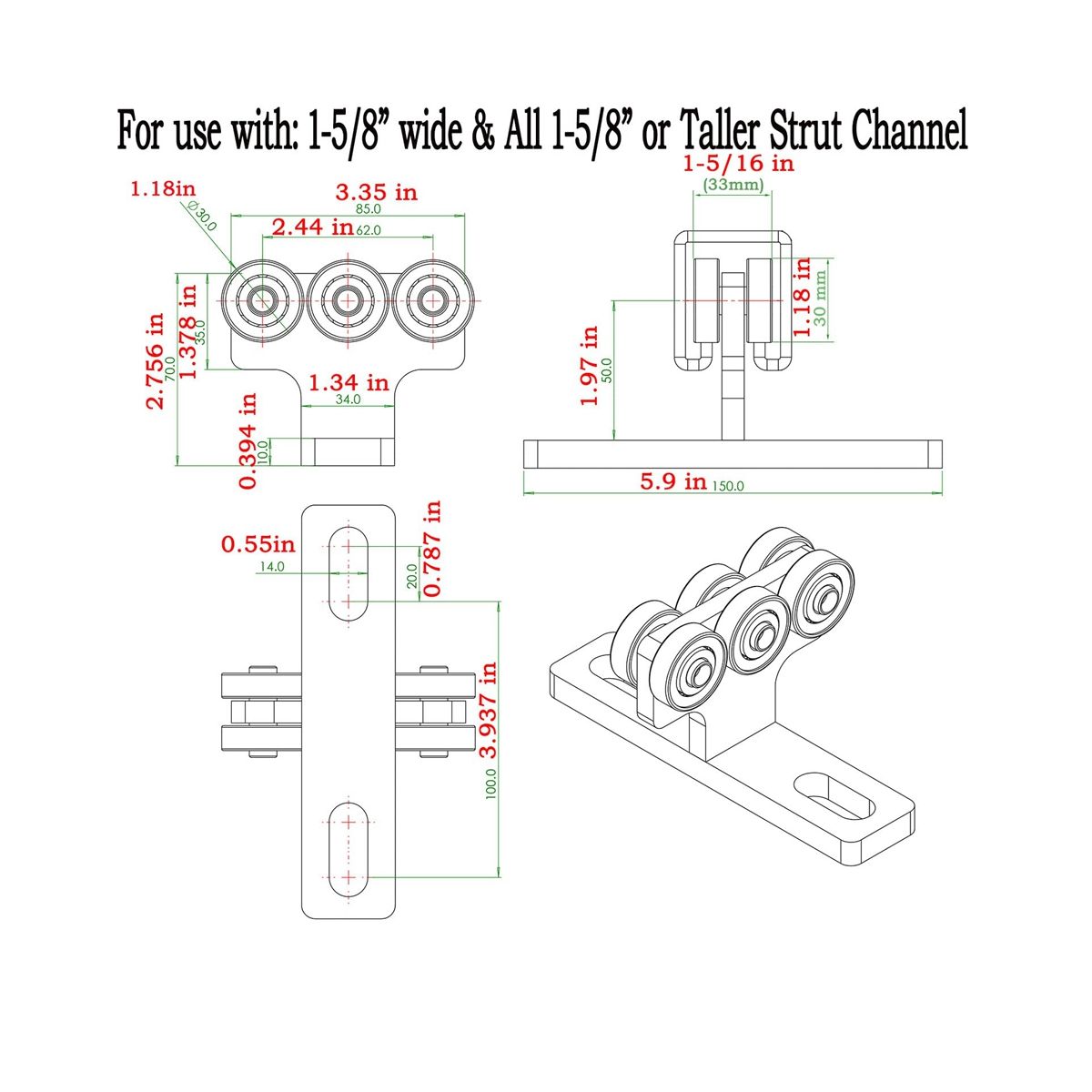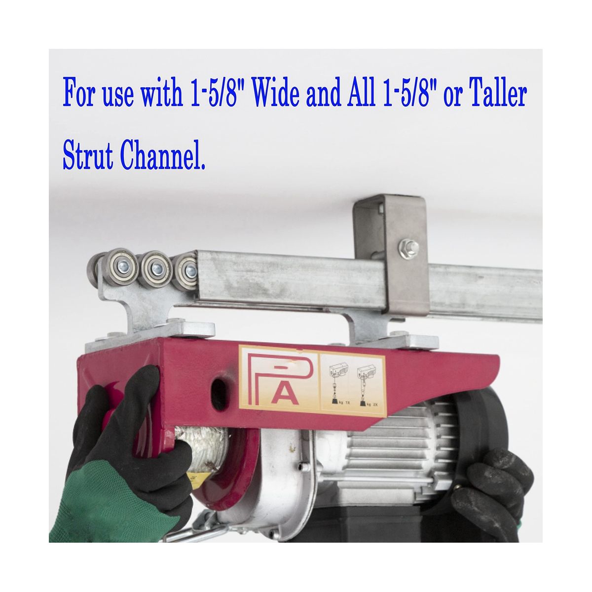 The distance between the center of the hole at the bottom of the support groove trolley can meet the location requirements of the installation holes of different types of electric hoists. If the fixing screws are installed in the support channel, the tram will not be to pass through the track, so the bolts that fix the support channel need to be installed outside the track. Color: silver