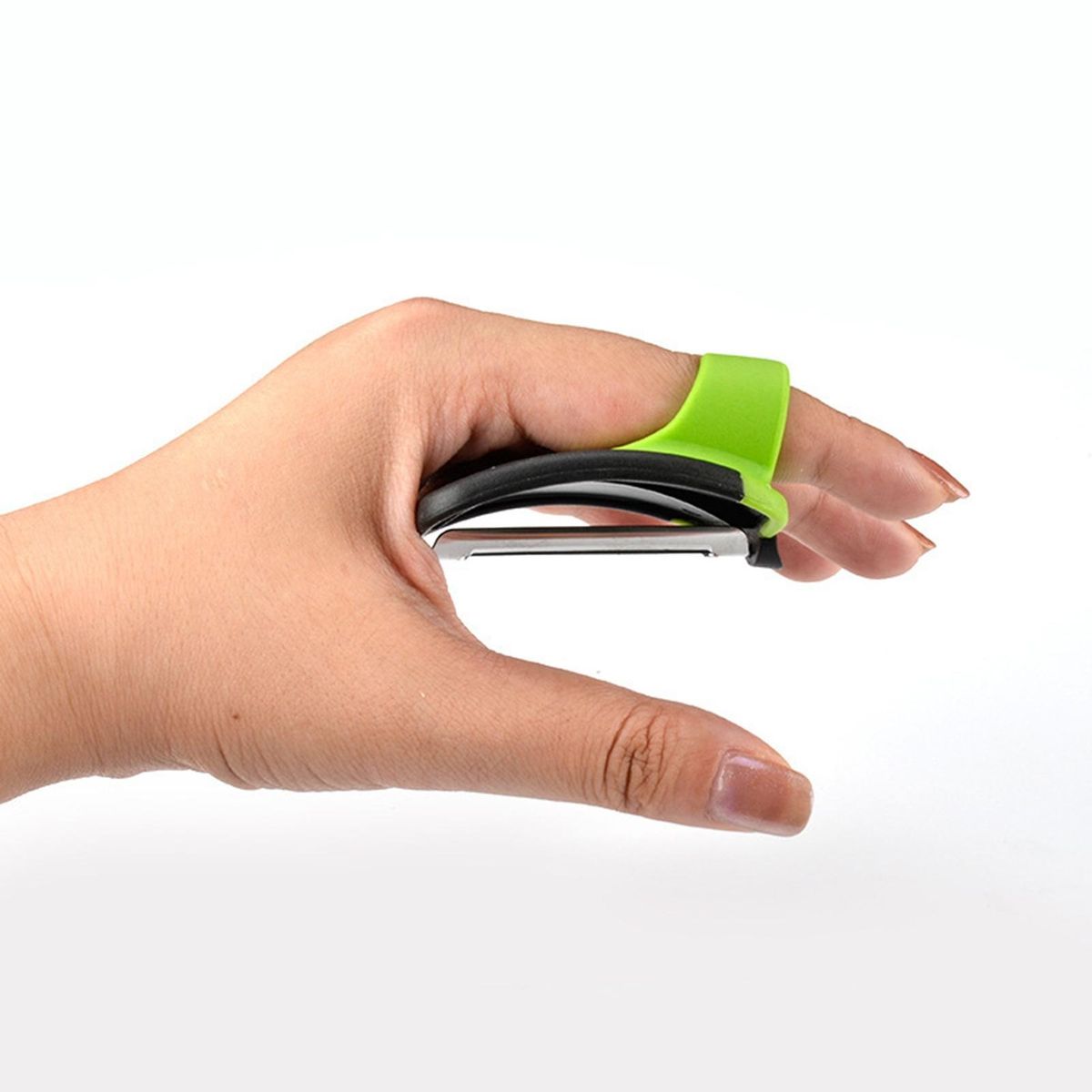 Adopting ergonomic finger grip hoops design, this product can bring you a comfortable grip feeling without slip. You can use this easily to peel fruit and vegetable without hurting your fingers.