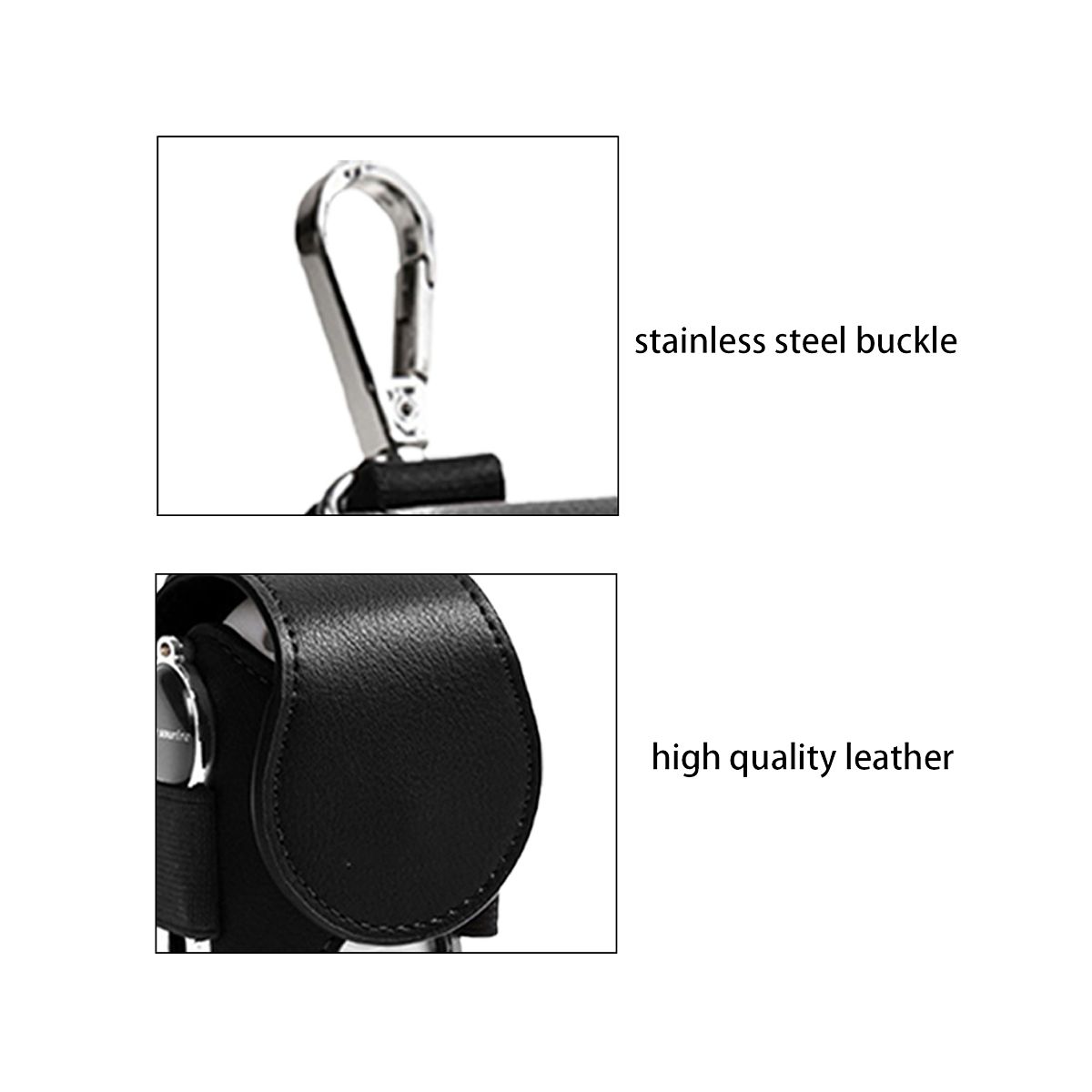 High Quality Material:Hand-stitched leather, higher quality. Wear-resistant, non-stick, easy to clean. Its back could pass through a belt and pinned to the waist.
