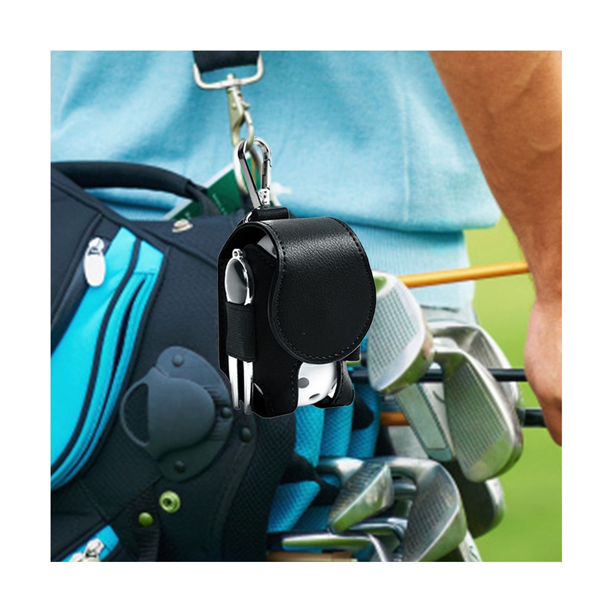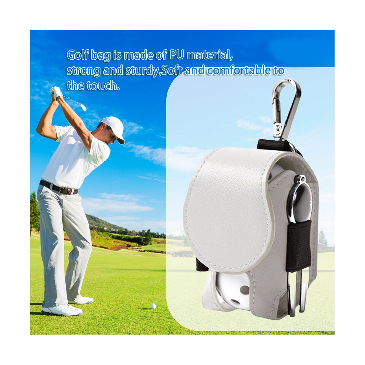 Convenient to Use: With button and metal carabiner hook, and there is a clip on the back of the golf ball bag, you can clip it on your clothes, or hang it on your waist with a metal hook. All in all it's easy to carry around and 't interfere with your golf swing.