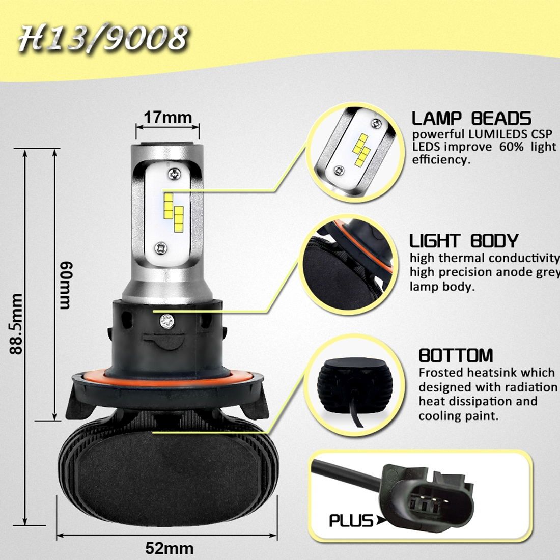 2 PCS H13 IP65 Waterproof 6 CSP LED Car Headlight Bulb