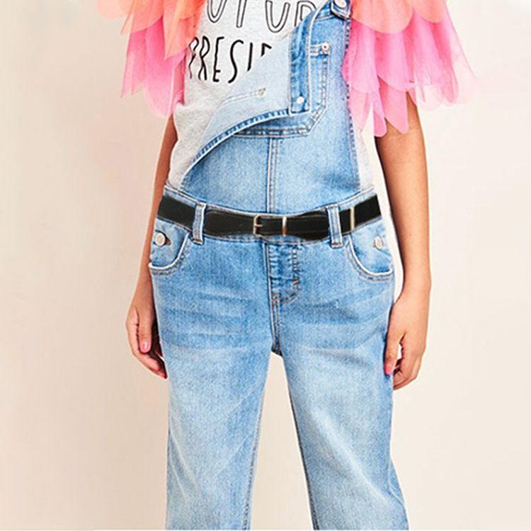 2 PCS Kids Polyester + PU Leather Square Pin Buckle Adjustable Elastic Belt, Length:65cm(Sky Blue)