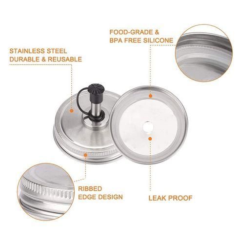 The following is the detailed introduction about our products: PACKAGE INCLUDE: Pack of 2 mason jar pour spout lids, silicone seals included. Lids fit most of regular mouth (70mm/2.76inch) mason jars oil dispensing bottles