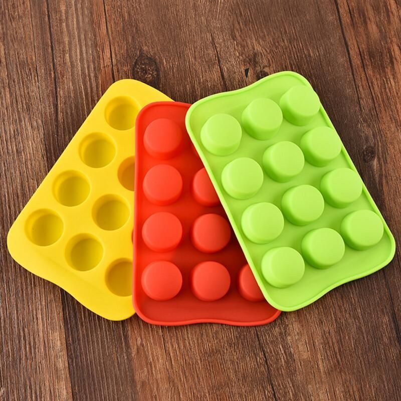 2 PCS Silicone Chocolate Mold Tray Creative Geometry Shaped Ice Cube Cake decoration Mold, Shape:Round(Yellow)