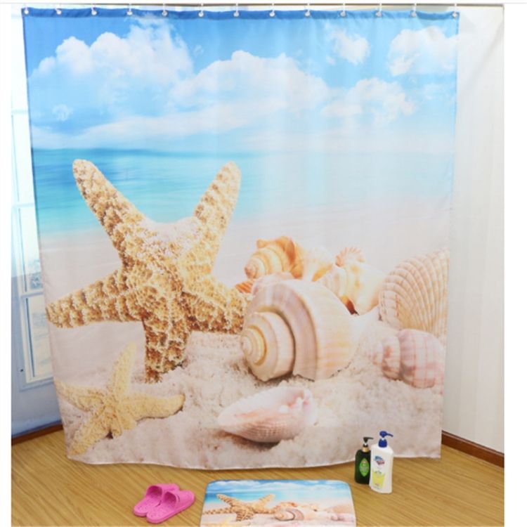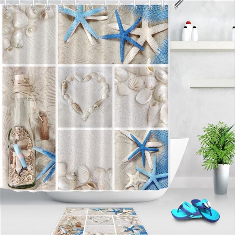 2 PCS Starfish Shell Polyester Washable Bath Shower Curtains