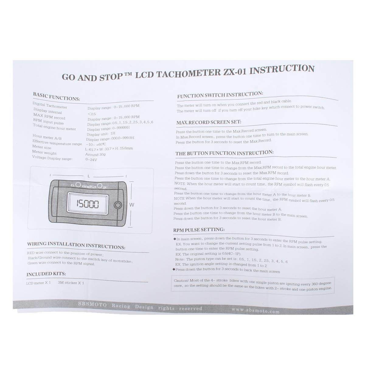 Digital Tachometer: Display range: 0-15,000RPM