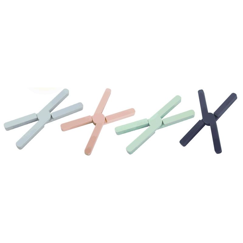 2 PCS Thickened X-shaped Silicone Foldable Pot Mat Kitchen Heat-Insulation Meal Coaster High Temperature Table Mat( Green)