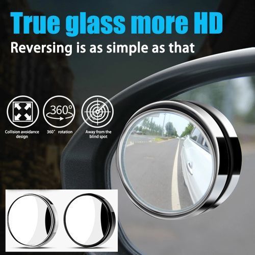 Features:This product is made of high quality ABS shell and high quality lens.The lens edge processing is beautiful and high-quality, and the field of view is wider.The double-sided tape is an imported original double-sided tape, which has firm viscosity and long service life.Anti-collision design, 360° rotation, away from blind spots.ABS anti-collision shell, silver plated process.Super glue, stronger.Glass mirror, portable HD, clear and durable.