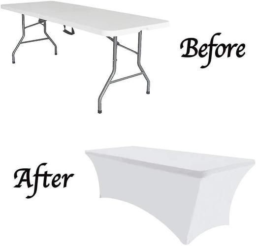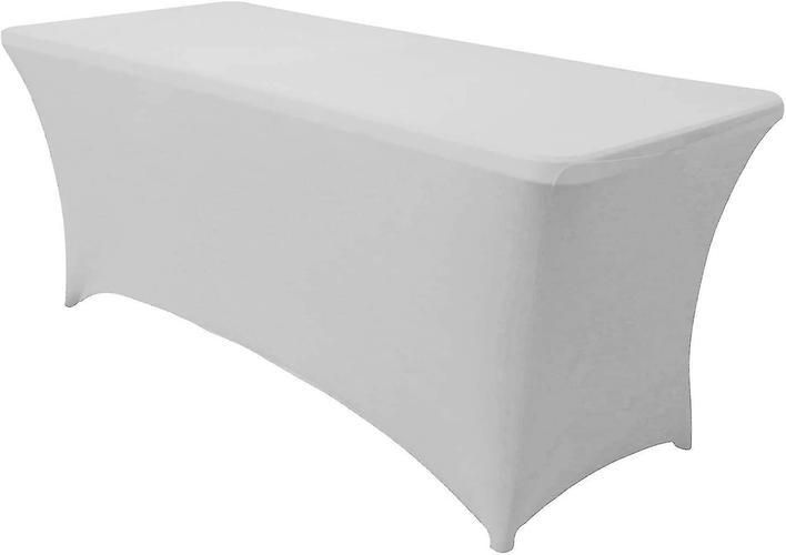 2 Pcs White 6ft Spandex Fitted Stretch Tablecloth Rectangular Training Stretch Table Cover For Banquet Cai1439