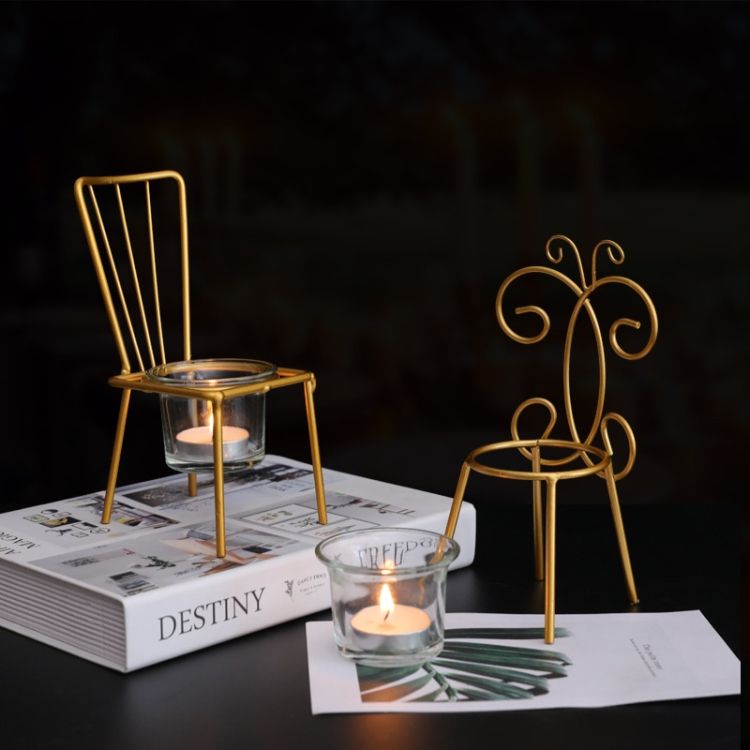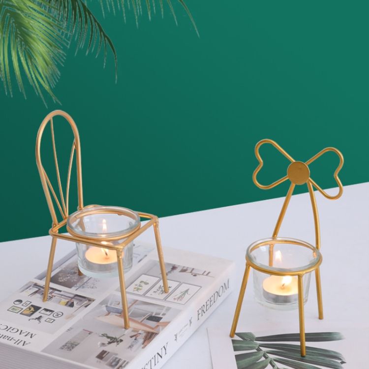 2 PCS Wrought Iron Chair Shape Candle Holder , Style:C