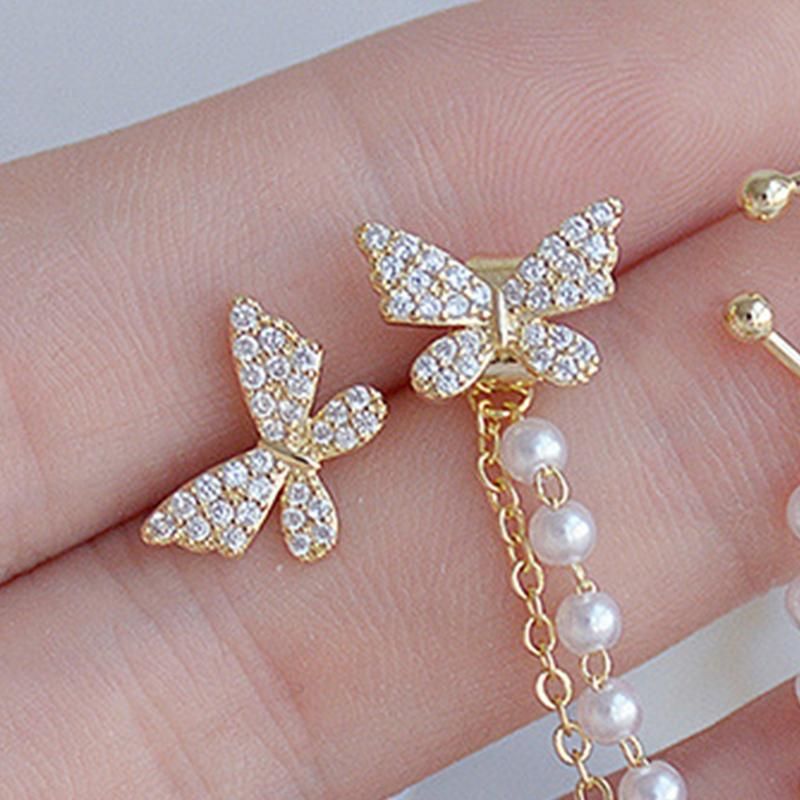 Rhinestone, butterfly shape and symmetric decoration make the earrings shiny and charming, and it is suitable for you to make yourself look more elegant and energetic.