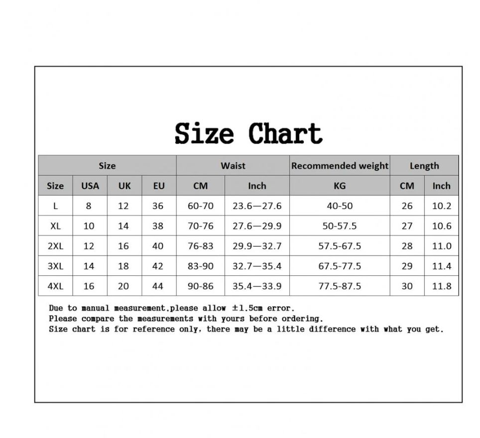 Size: XL, Waist: 70cm-76cm/27.6"-29.9", Recommended Weight: 50cm-57.5KG, Length: 27cm/10.6" (Approx.)