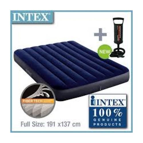Intex Inflatable 10inch Classic Downy Airbed With Pump -2 person-54'' x 75'' x 10'' (1.37m x 1.91 m x 25 cm) (W X L X H)