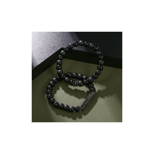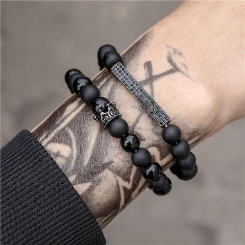 Buy 2-Piece Crown Natural Stone Matt Lava Bead Bracelet For Men - Black in Nigeria